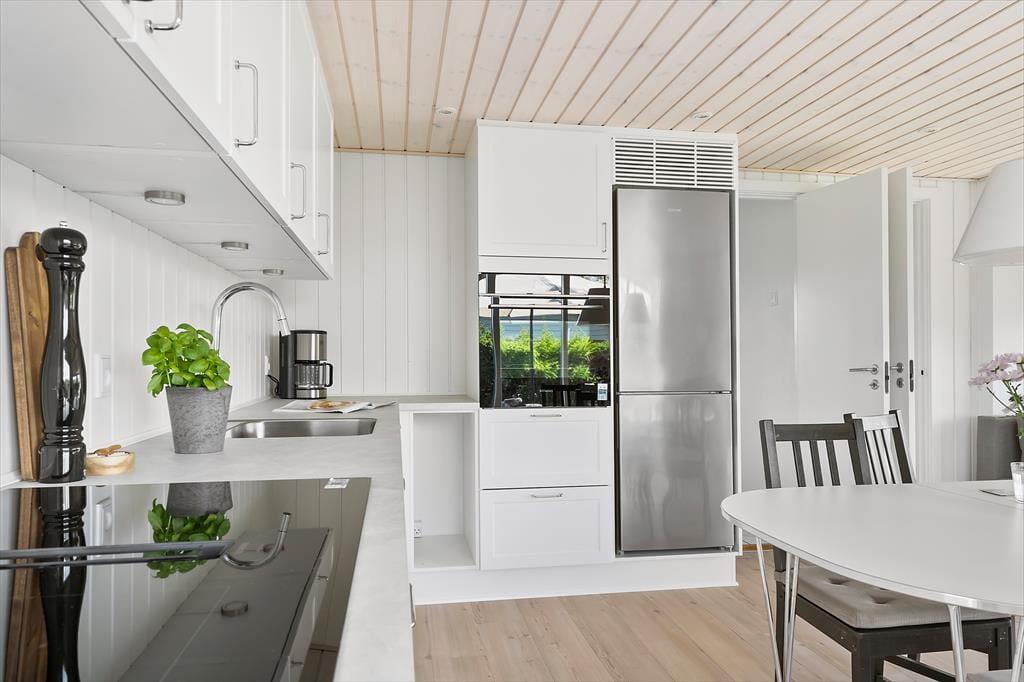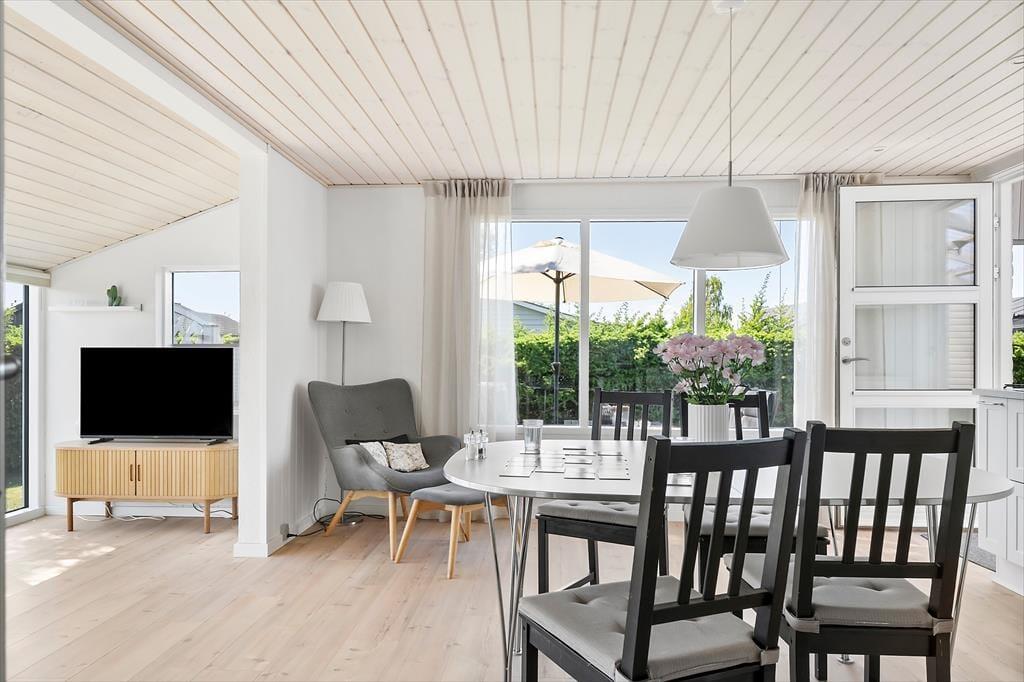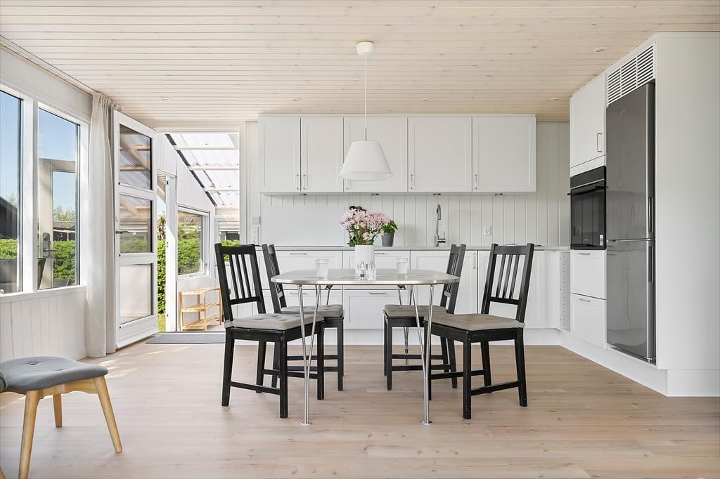 Das Ferienhaus präsentiert sich hell und einladend. In der offenen Küche können Sie beim Kochen die Gesellschaft der anderen genießen. Rund um den Esstisch ist viel Platz für gemeinsame Momente – vielleicht bei einem Brettspiel oder ähnlichem. Der schöne Wintergarten bietet zusätzlichen Raum für Entspannung und Gemütlichkeit.