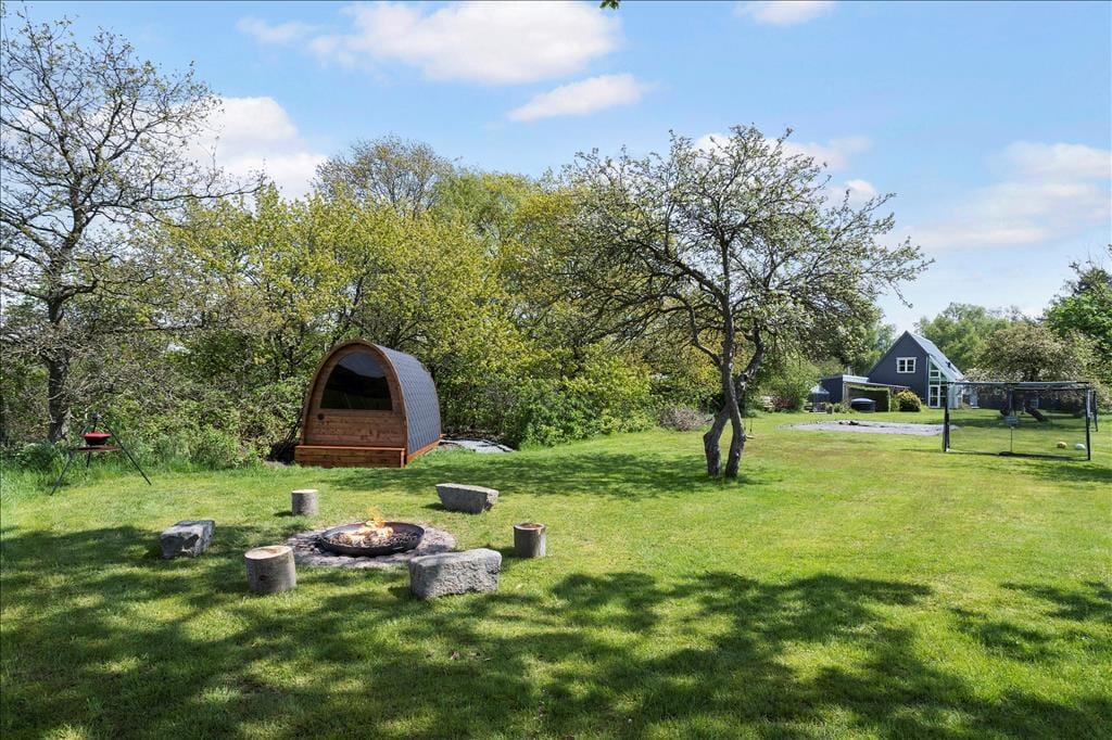 Die Lage dieses Urlaubsdomizils ist wirklich einzigartig. Sie wohnen wunderbar nah an Juelsminde, am Strand und am Wald. Wunderschöne Natur erstreckt sich direkt vor Ihrer Haustür. Das schöne Grundstück umfasst eine Fläche von 4.000 m² und bietet Ihnen somit ausgesprochen viel Platz und Bewegungsfreiheit. Unter freiem Himmel gibt es gleich mehrere offene und überdachte Terrassen. Gartenmöbel und Liegestühle sind vorhanden. Gleiches gilt für zahlreiche gemütliche Eckchen, in denen Sie sich in aller Ruhe und ganz gedankenverloren niederlassen und entspannen können. Falls Sie eher den angenehm kühlen Schatten bevorzugen, ziehen Sie sich einfach unter den Sonnenschirm oder unter die Markise zurück. Aktive Gäste dürfen sich auf die große Grasfläche mit zwei Fußballtoren freuen. Ihre Kinder wird sicherlich das Trampolin verzücken. Insgesamt bietet sich Ihnen und Ihrer Familie wunderbar viel Platz für gemeinsame Aktivitäten. Allabendlich lockt darüber hinaus Ihre private Lagerfeuerstelle, an der Sie in aller Gemütlichkeit Würstchen und Stockbrot rösten und schaurig-schöne Geschichten erzählen können. Traumhaft schöne Momente der Erholung und Entspannung garantieren Ihnen die Schwedische Badetonne und die ganz fantastische Außensauna, die darüber hinaus mit einer prachtvollen Aussicht über die Landschaft zu verzaubern weiß - diese Momente sind reinster Balsam für Körper und Seele!