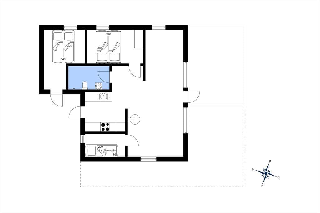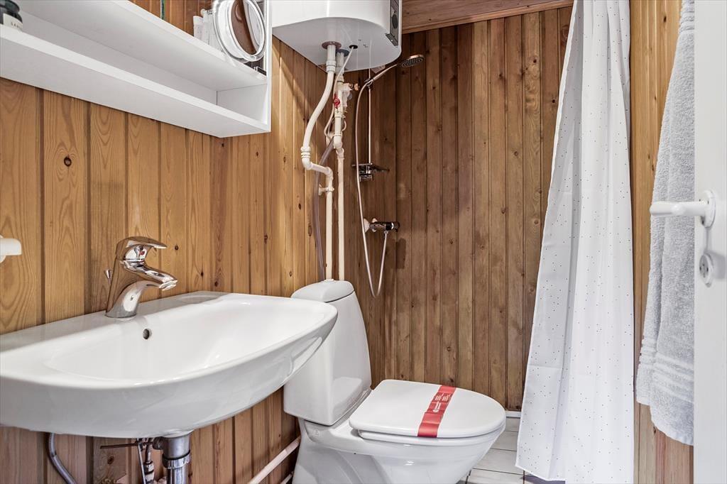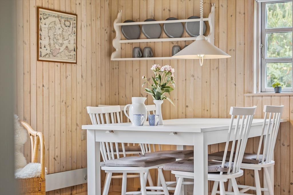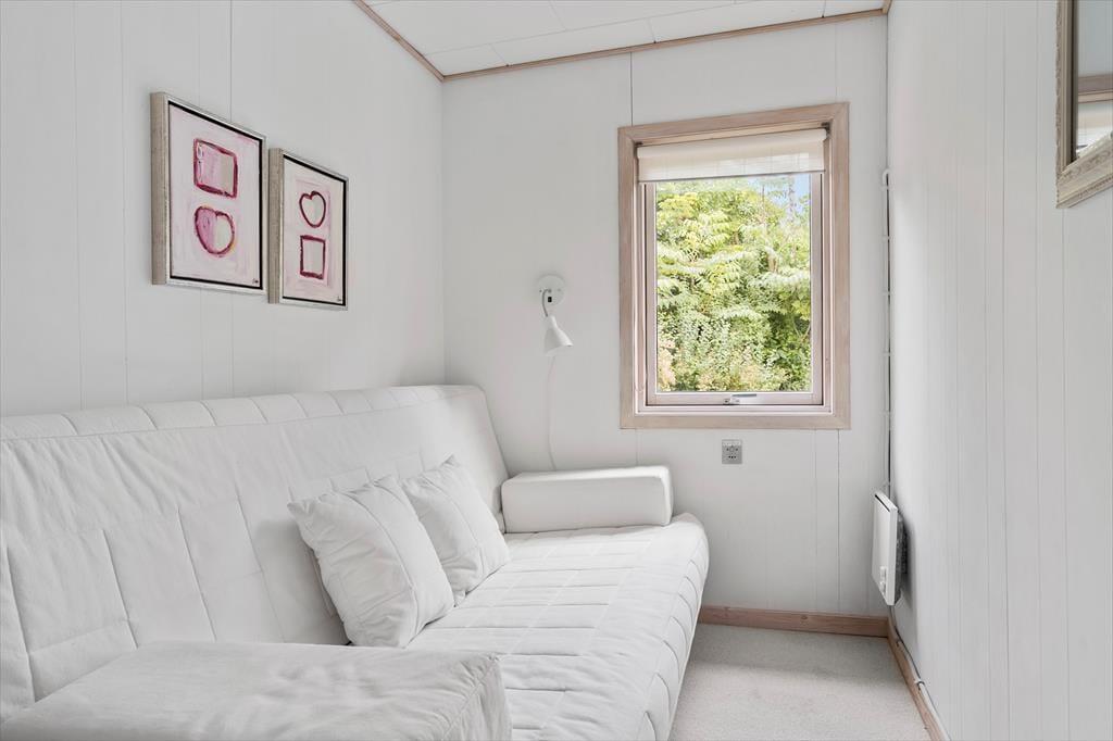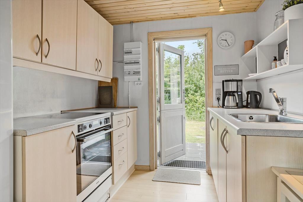 Dieses Ferienhaus ist ein richtiges Sommerhaus, gemütlich eingerichtet und ideal für den gemeinsamen Urlaub. Vom Eingangsbereich aus haben Sie einen direkten Zugang zur offenen Wohnküche. Der Wohnraum ist mit Sitzgruppe, TV, Kaminofen, und Essbereich ausgestattet. Das Haus verfügt über 5 Schlafplätze verteilt auf zwei Zimmer mit Doppelbett sowie ein Zimmer mit doppelter Schlafcouch. Ein Schlafzimmer mit dem Doppelbett hat Zugang von außen. Badezimmer mit Dusche.