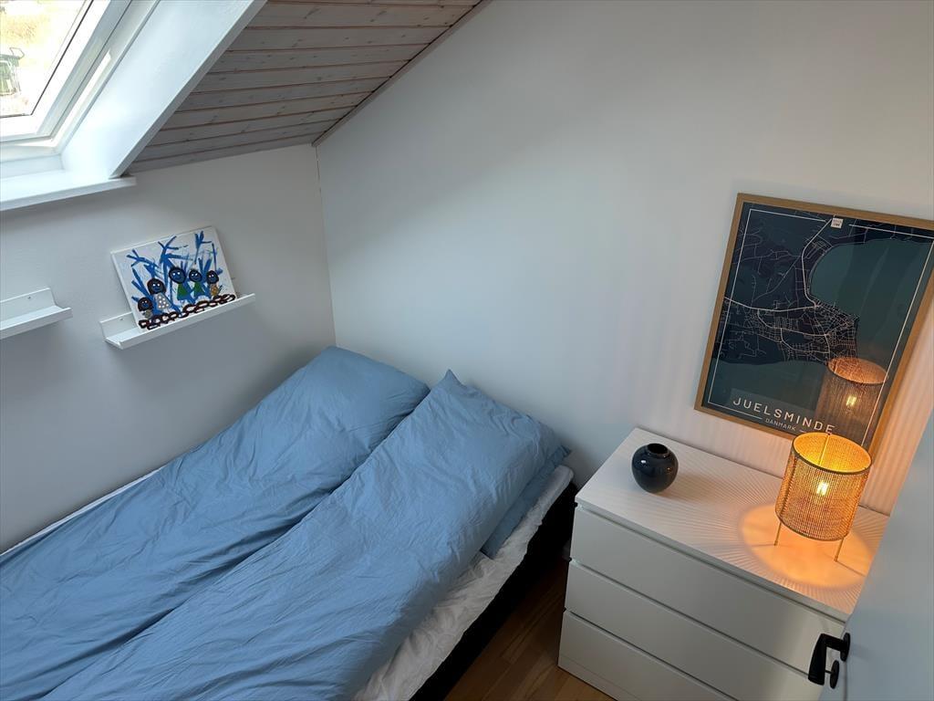 Sie wohnen in einem ruhigen Weg mit begrenztem Verkehr inmitten des beliebten Teils Juelsmindes - nahe am "Storstranden" und dem Ortskern.
