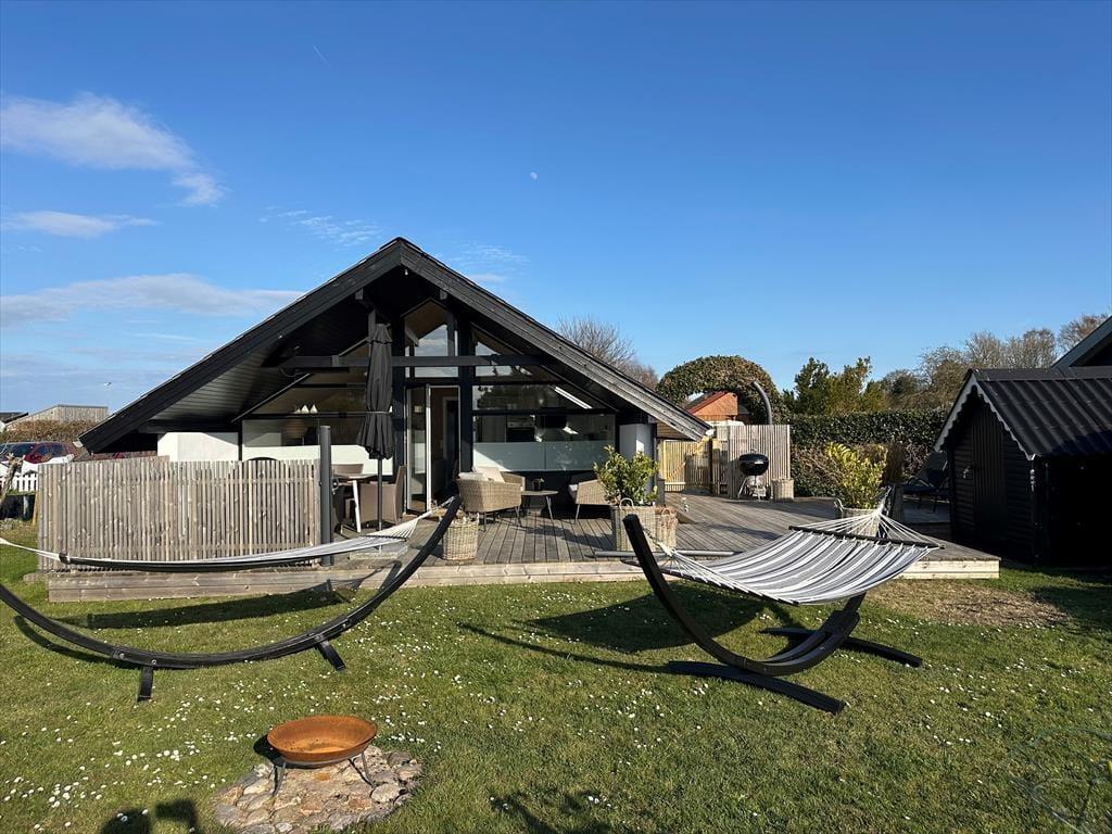 Willkommen in diesem wirklich schönen Ferienhaus, Alles in und am Haus präsentiert sich modern und in bester, "echter" Ferienhausmanier. Das Haus beherbergt problemlos bis zu 6 Erwachsene, die von entspannten Urlaubstagen nahe am Ort und Hafen träumen. Gleichzeitig wohnen Sie in einem ruhigen Ferienhausgebiet, nur 200 Meter vom Strand entfernt.