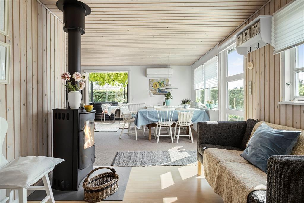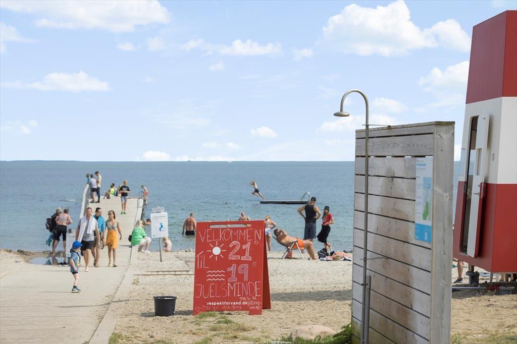 Nur 200 Meter vom Ferienhaus entfernt befindet sich der schönste Strand, an dem Sie am Wasser entlang bis zum Jachthafen spazieren können, wo Sie herrlich zu Mittag essen und ein großes Eis essen können. Der Jachthafen ist unglaublich charmant, mit schönen Booten, Restaurants, Eisdielen, einem Spielplatz und einer Krabbenbrücke für die Kleinen. Von hier aus ist es nur ein kurzer Spaziergang zum Ortszentrum mit mehreren Restaurants und gemütlichen Geschäften. Wenn Sie in Juelsminde sind, sollten Sie auch einen Abstecher zum Naturlegeparken mit dem 8 Meter hohen Spielturm am Odelsbjerget und vielen Aktivitäten für die Kleinen sowie 2 guten Paddle-Tennisplätzen machen. Juelsminde verfügt auch über einen 18-Loch-Golfplatz mit Blick auf das Kattegat.