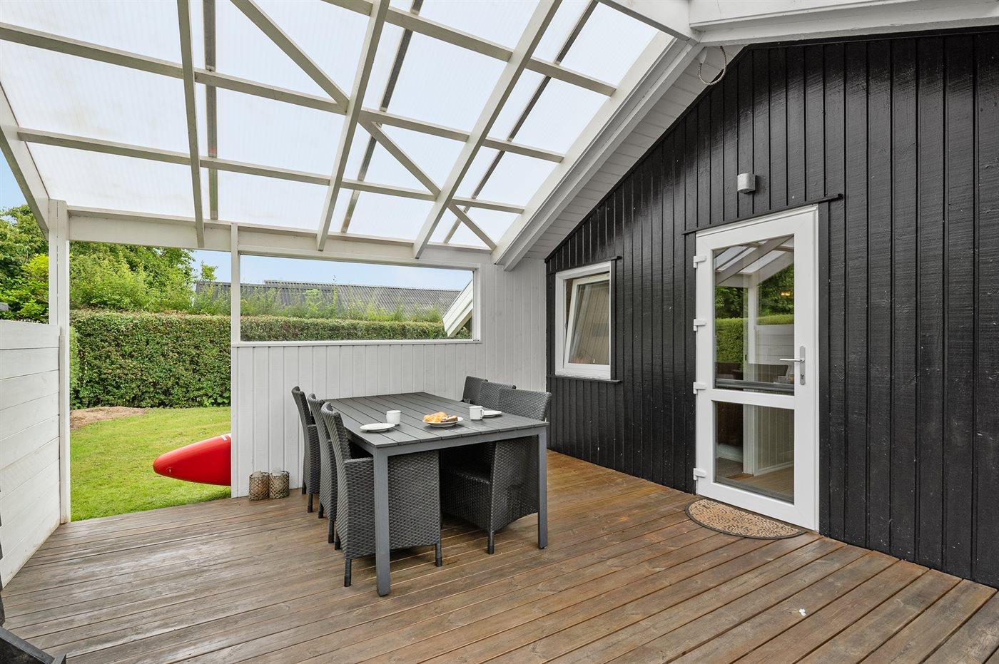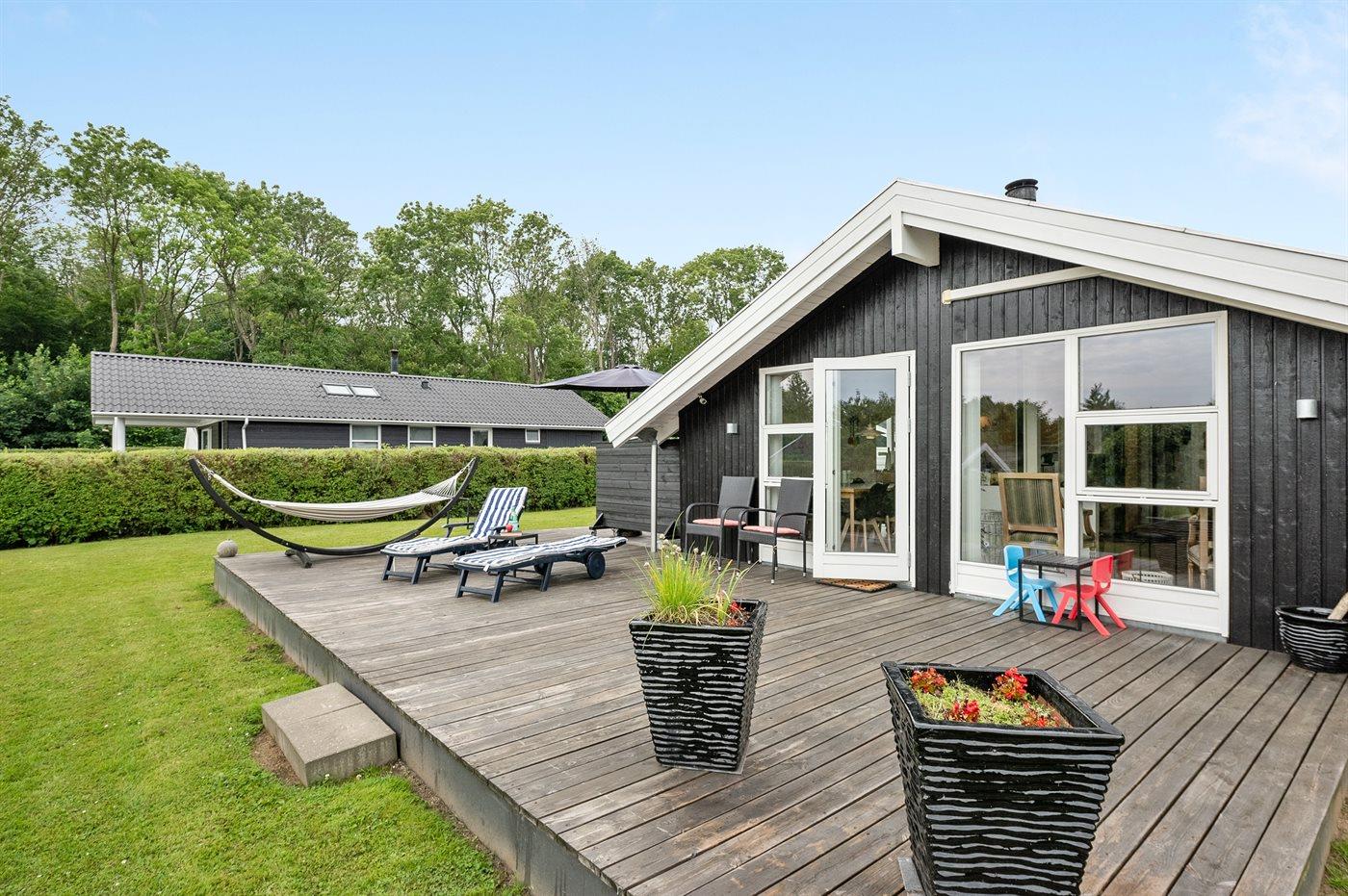 In einem schönen Feriengebiet etwa 350 m vom Wasser entfernt liegt dieses gepflegte Ferienhaus. Die Inneneinrichtung ist hell und modern. Das Haus liegt ungestört und es stehen gute und teilweise überdachte Terrassen zur Verfügung. Übrigens: 2 der insgesamt 6 Schlafplätze befinden sich in einem Alkoven im Wohnzimmer. Der phantastische Ferienort Juelsminde, wo Sie u. a. einen gemütlichen Hafen und Restaurants finden, liegt etwa 10 km vom Haus entfernt.