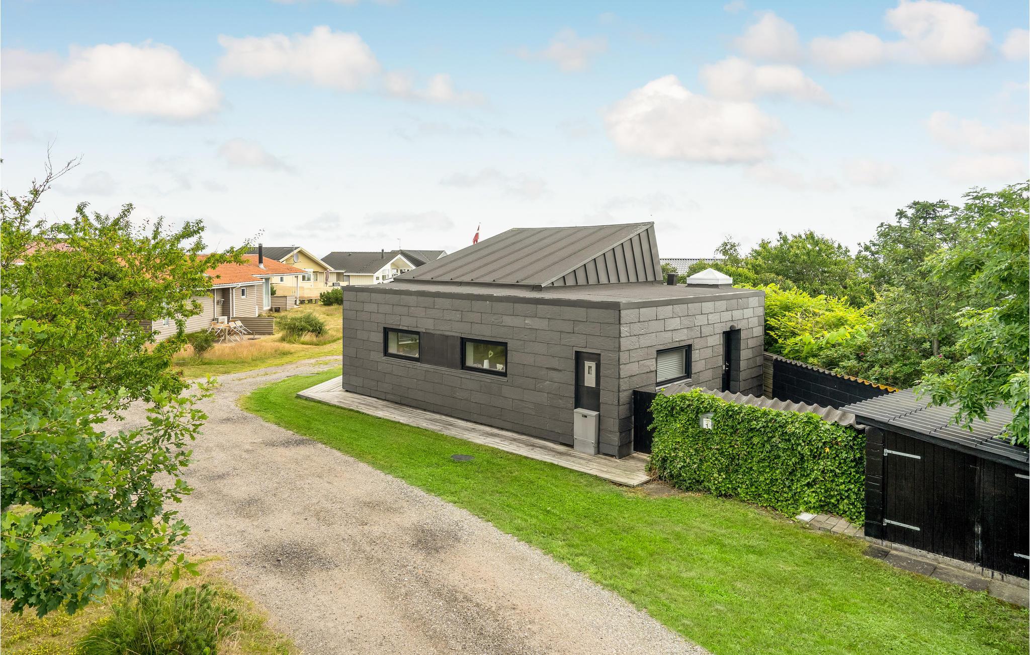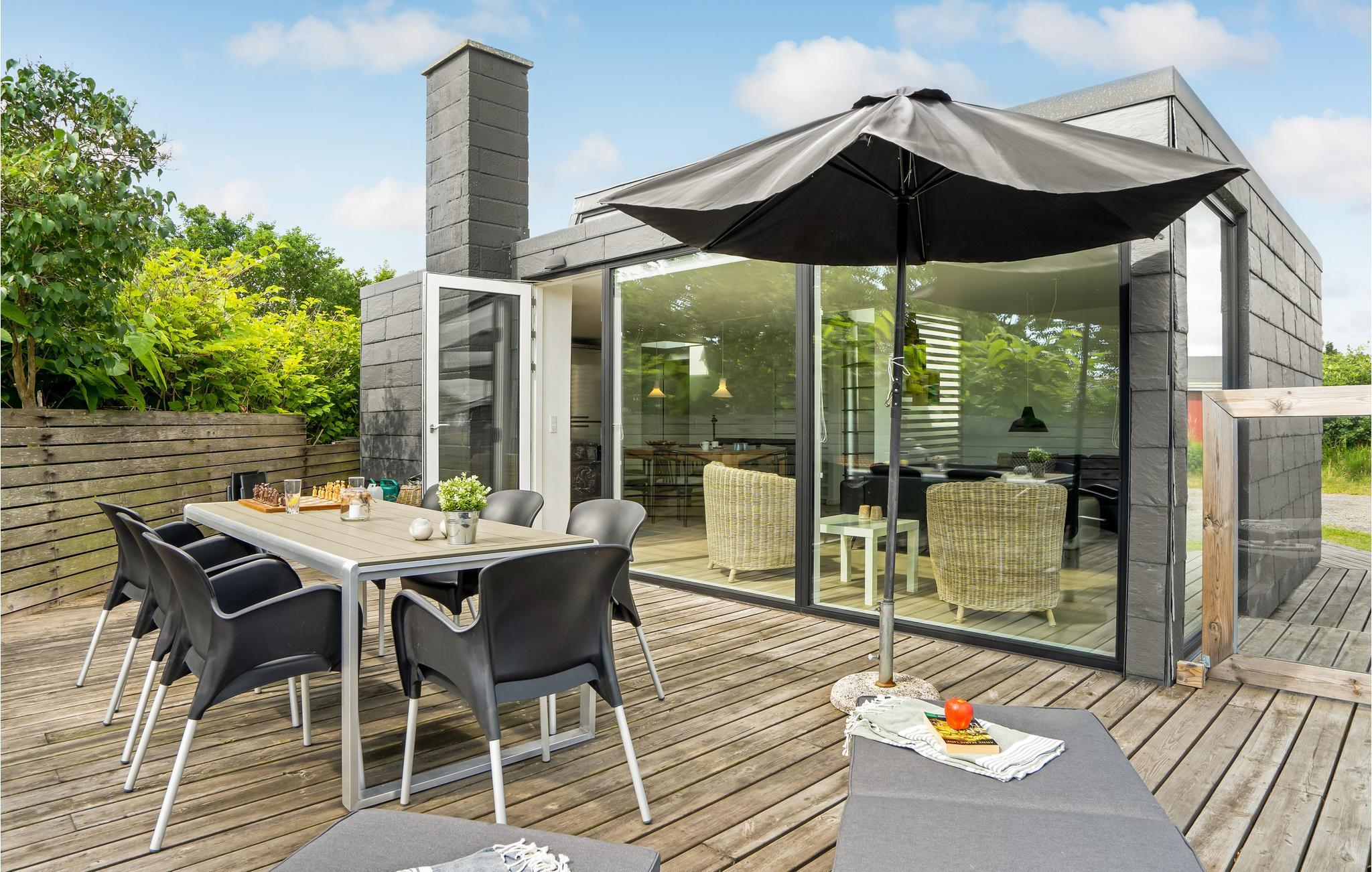 Modernes, orginales Ferienhaus mit Meerblick, nur 80 m vom Sandstrand gelegen.
