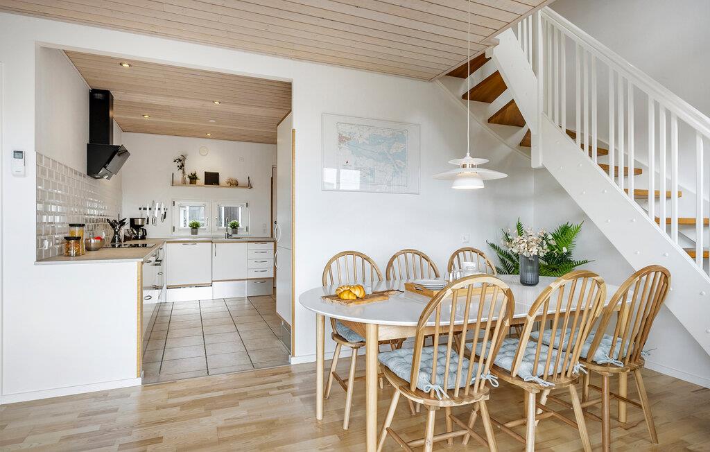 Genießen Sie den offenen Wohnbereich mit Esstisch und großzügiger Sofaecke sowie direktem Zugang zu der sonnigen Terrasse. Lehnen Sie sich auf dem Sofa zurück und verbringen Sie entspannte Stunden mit guten Filmen, spannender Urlaubslektüre oder lustigen Kartenspielen. Die praktische Küche lädt zum gemeinsamen Kochen ein, und am schönen Esstisch ist Platz für Mahlzeiten, Gespräche und gesellige Abende. Für Entspannung sorgt der hauseigene Whirlpool.