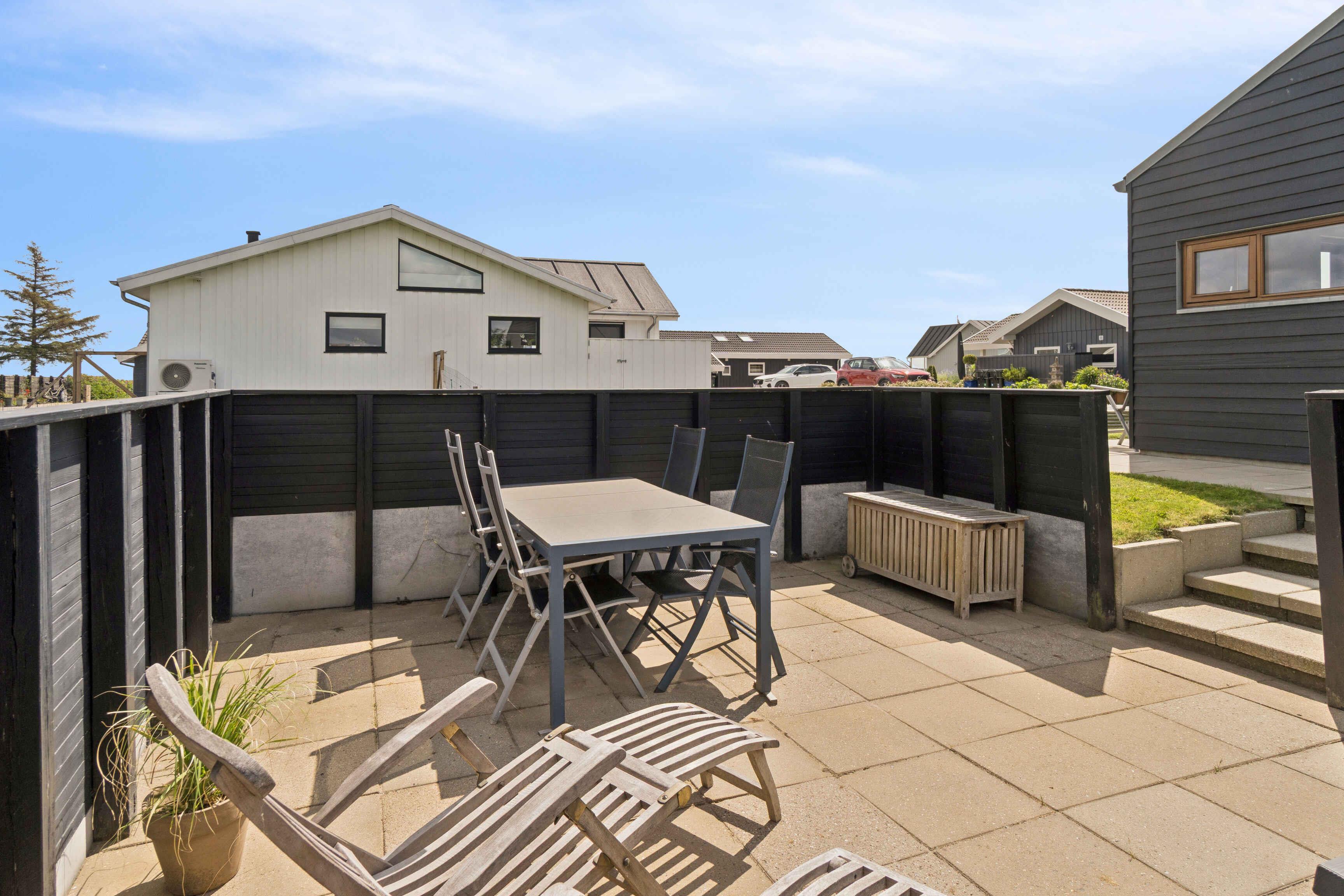 Erleben Sie ein Ferienhaus, das Stil und Komfort vereint. Das Haus bietet 96 m², aufgeteilt in Hauptgebäude und Anbau, mit Platz für 4 Personen. Perfekt für einen entspannten Urlaub. Die Unterkunft liegt nur 100 Meter von einem Sandstrand entfernt. Genießen Sie Schwimmen, lange Spaziergänge und Entspannung am Wasser. Ideal für Familien und Paare. Das Haus verfügt über einen geschlossenen Innenhof und drei Terrassen. Eine Außenküche mit Luxusgrill und eine Außendusche mit warmem und kaltem Wasser sorgen für zusätzlichen Komfort im Sommer. Im Inneren finden Sie einen gemütlichen Kaminofen, der für Atmosphäre sorgt. Anbau und Hauptgebäude bieten Flexibilität und Privatsphäre. As Vig bietet eine friedliche Umgebung und naturnahe Erlebnisse. Erkunden Sie die Gegend mit dem Fahrrad, genießen Sie Strandaktivitäten oder besuchen Sie lokale Attraktionen. Eine perfekte Basis für Sommererinnerungen. Achtung: Wird nicht für gewerbliche Nutzung vermietet.