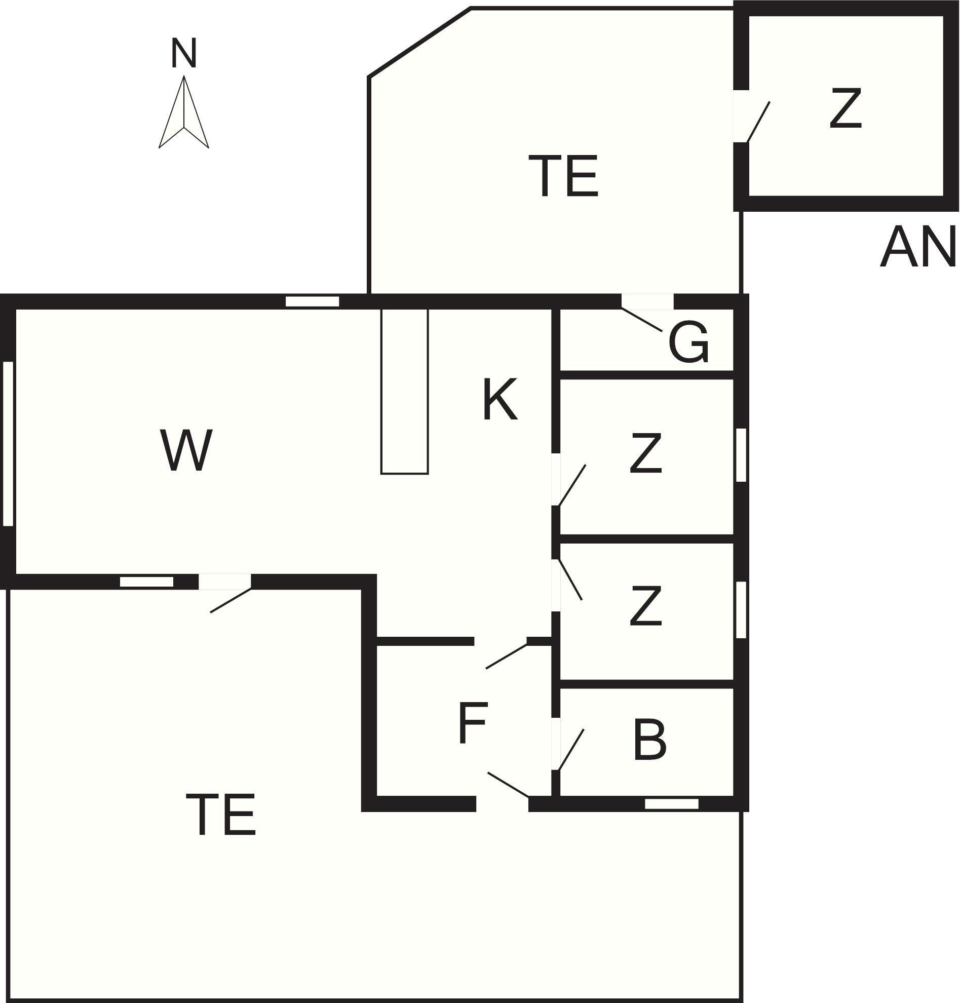 Ferienhaus mit schönem, windgeschütztem Grundstück im Ferienhausgebiet Kærgården. Das ältere Haus ist mit persönlicher Note eingerichtet. An einem kühleren Abend sorgt der Holzofen für Gemütlichkeit und Wärme. Offene Küche mit Herd, Dunstabzugshaube, Kühl-/Gefrierschrank und praktischer Waschmaschine.