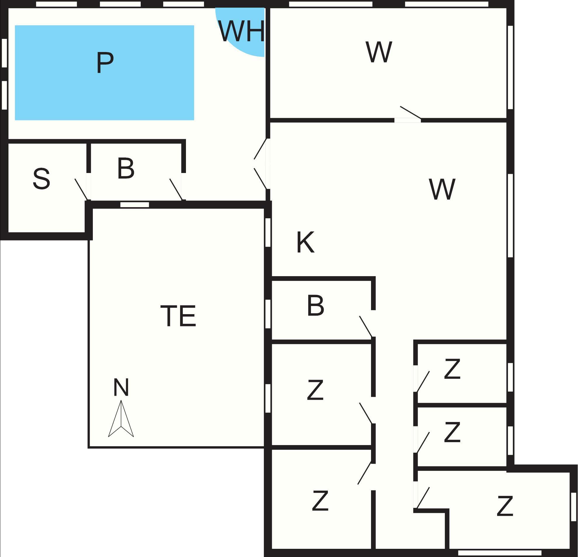 Schön hell und freundlich eingerichtetes und gut instand gehaltenes Ferienhaus mit hauseigenem Swimmingpool. Steht in der ersten Reihe in Kærgården, mit schöner Aussicht zum Wasser im Krik Vig und Agger Tange. Vom Haus sind es nur ca. 200 m zum Strandufer mit Badesteg.