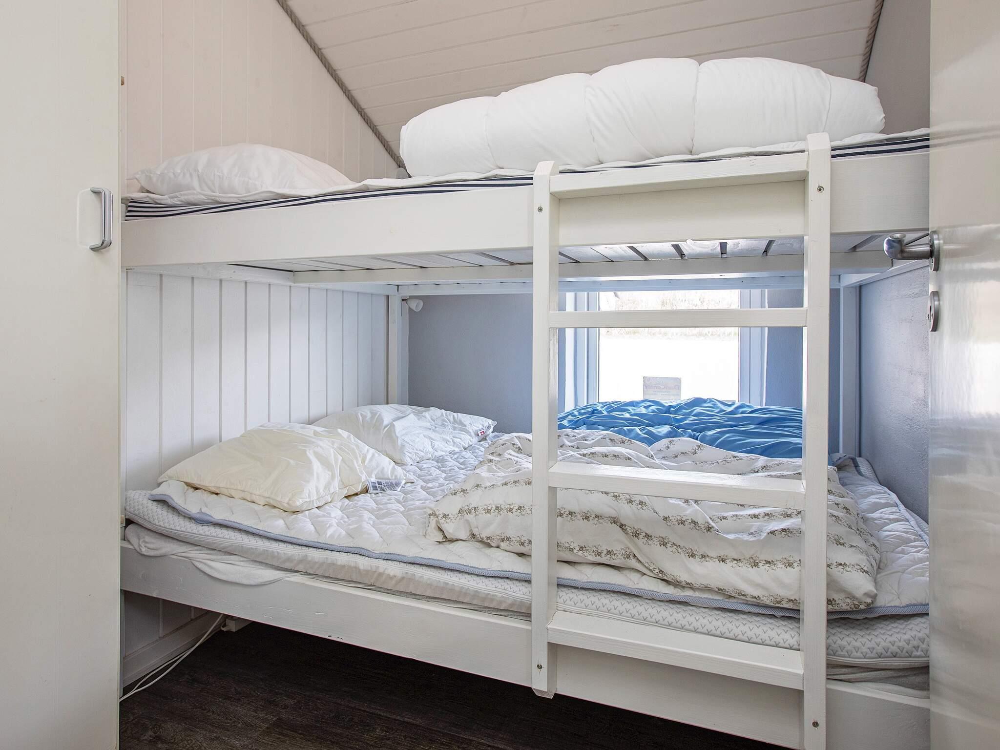 Das Ferienhaus eignet sich für bis zu zwölf Personen, die Schlafplätze sind auf vier Schlafzimmer und einen Hems oben unter der Dachschräge verteilt: es gibt ein Schlafzimmer mit einem Doppelbett, eines mit einem Doppelstockbett für max. 4 Personen sowie zwei weitere Schlafzimmer mit jeweils einem Etagenbett für zwei Personen. Zwei Schlafplätze befinden sich oben auf dem Hems. Zusätzlich zum größeren Badezimmer gibt es ein praktisches Gäste-WC mit angenehmer Fußbodenheizung.