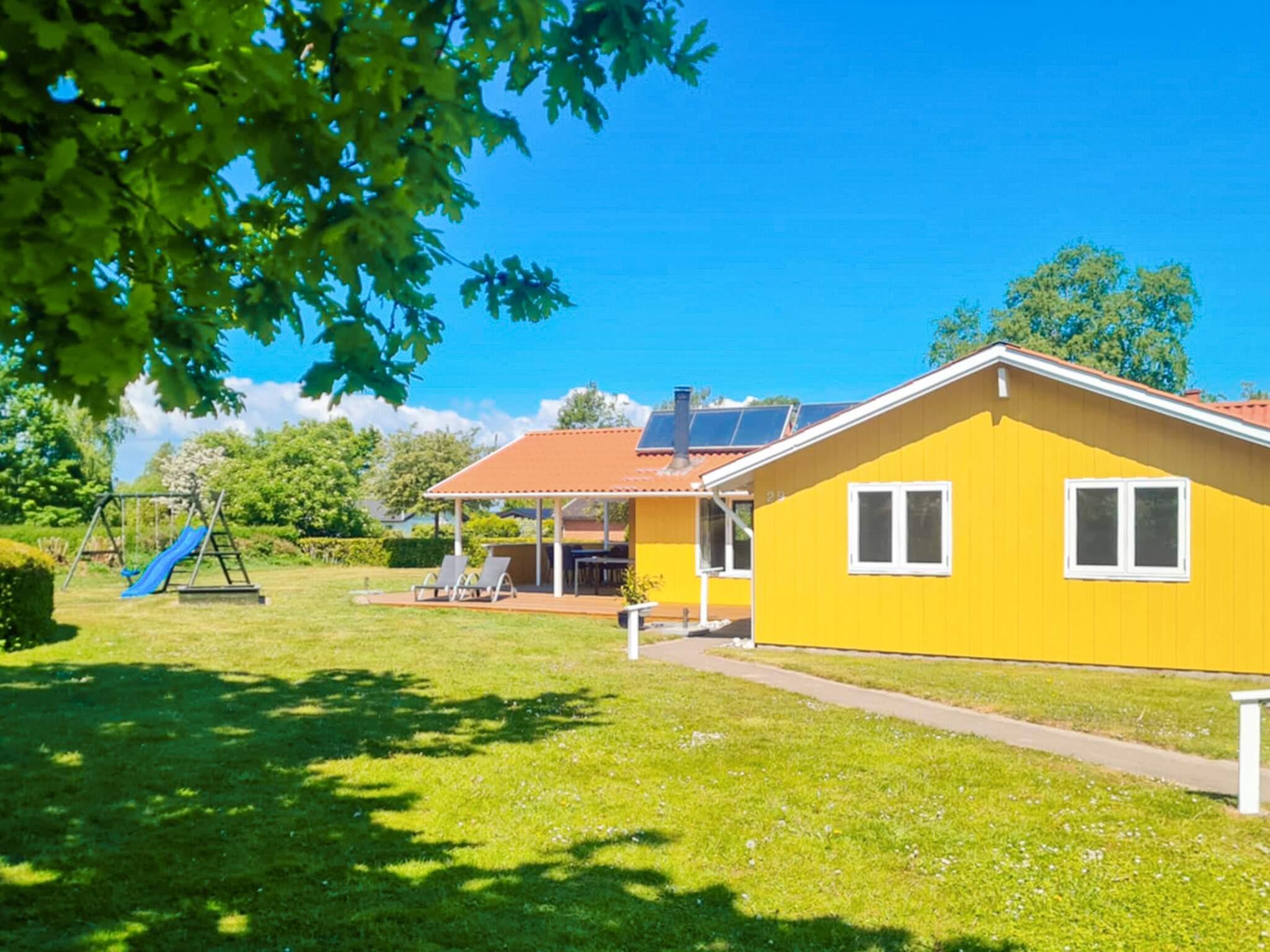 Geräumiges Ferienhaus, hell und wohnlich eingerichtet. Warmwasser wird hier mittels umweltfreundlicher Solarenergie erwärmt. Gute technische Küchenausstattung sowie sprudelnder Whirlpool für 2-3 Pers. und gr. Sauna für bis zu 6 Pers. im Haus. Die Zimmertüren vom Bad und 2 SZ sind besonders breit und die Räume somit auch für Rollstuhlfahrer zugänglich. Vom Naturgrundstück, mit u.a. Feuerstelle, Schaukel und Sandkasten, und einer Ecke des Wohnzimmers hat man eine schöne Aussicht zum Kleinen Belt.