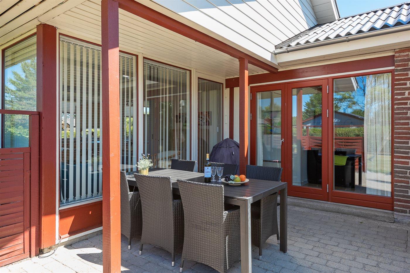 Die Ferienunterkunft liegt auf einem 690 m² großen Gartengrundstück. Die Entfernung zum Meer beträgt 200 m. Die nächste Einkaufsmöglichkeit liegt 2600 m entfernt. In einem Abstand von 6000 m gibt es einen Golfplatz. Es steht ein 30 m² Terrassenareal zur Verfügung. Außerdem gibt es 7 m² überdachte Terrasse. Schaukel. Sandkasten.An Sommerabenden sorgt der Außenkamin für eine gemütliche Atmosphäre. Es steht ein Carport zur Verfügung. Parkplatz auf dem Grundstück.