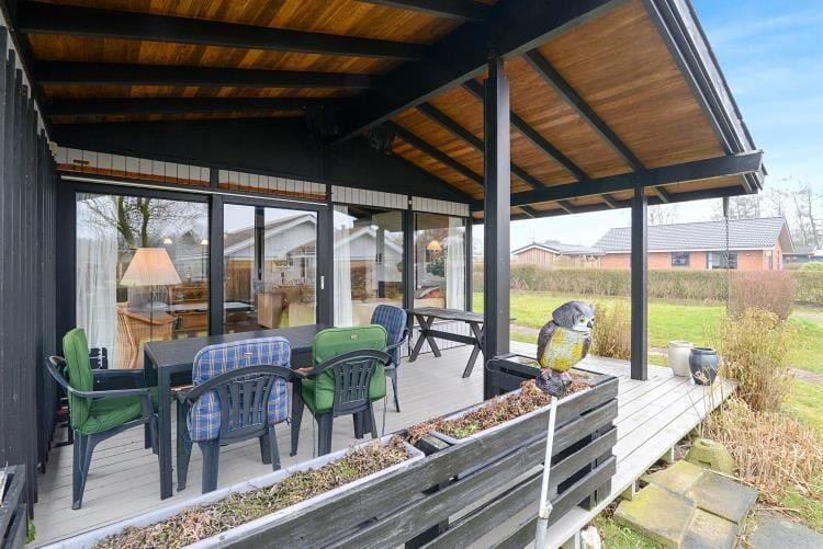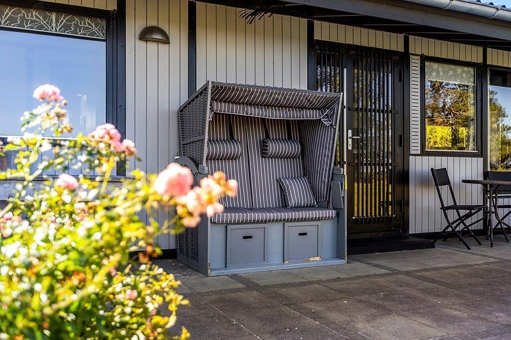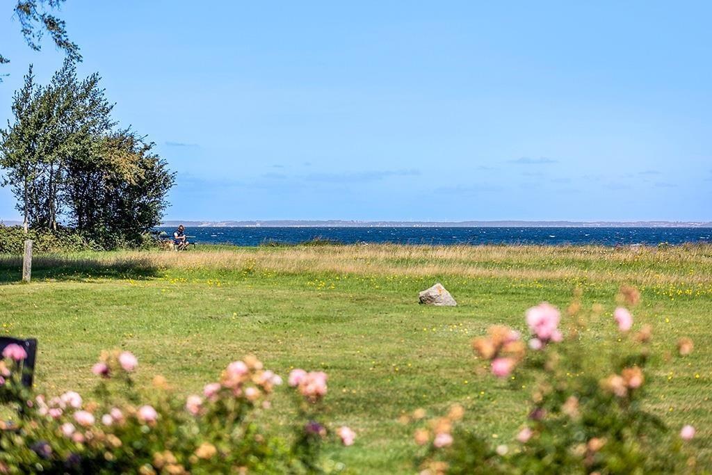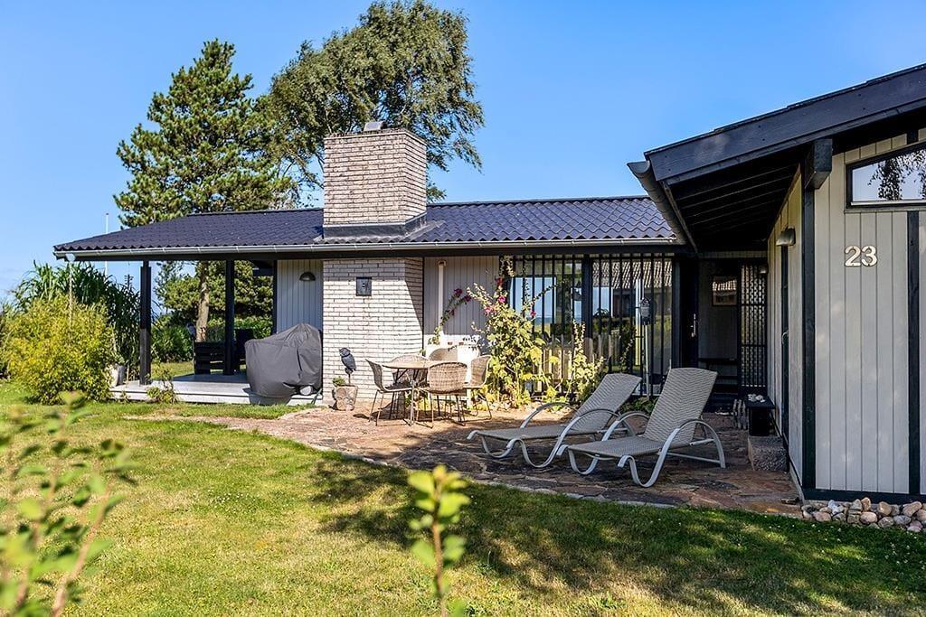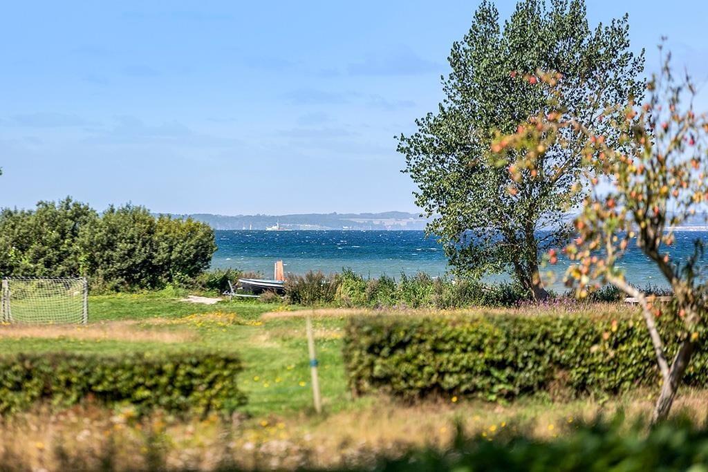 Auf der offenen, überdachten Terrasse laden Schatten und Windschutz zu erholsamen Momenten im Freien ein. Auf der Terrasse genießen Sie einen schönen Ausblick. Das große Grundstück besticht mit einem direkten Zugang zum Kleinen Belt. Nach einem erfrischenden Bad in den wogenden Wellen spült Ihnen die Außendusche mit warmem und kaltem Wasser den Sand und das Salz des Meeres von der Haut.