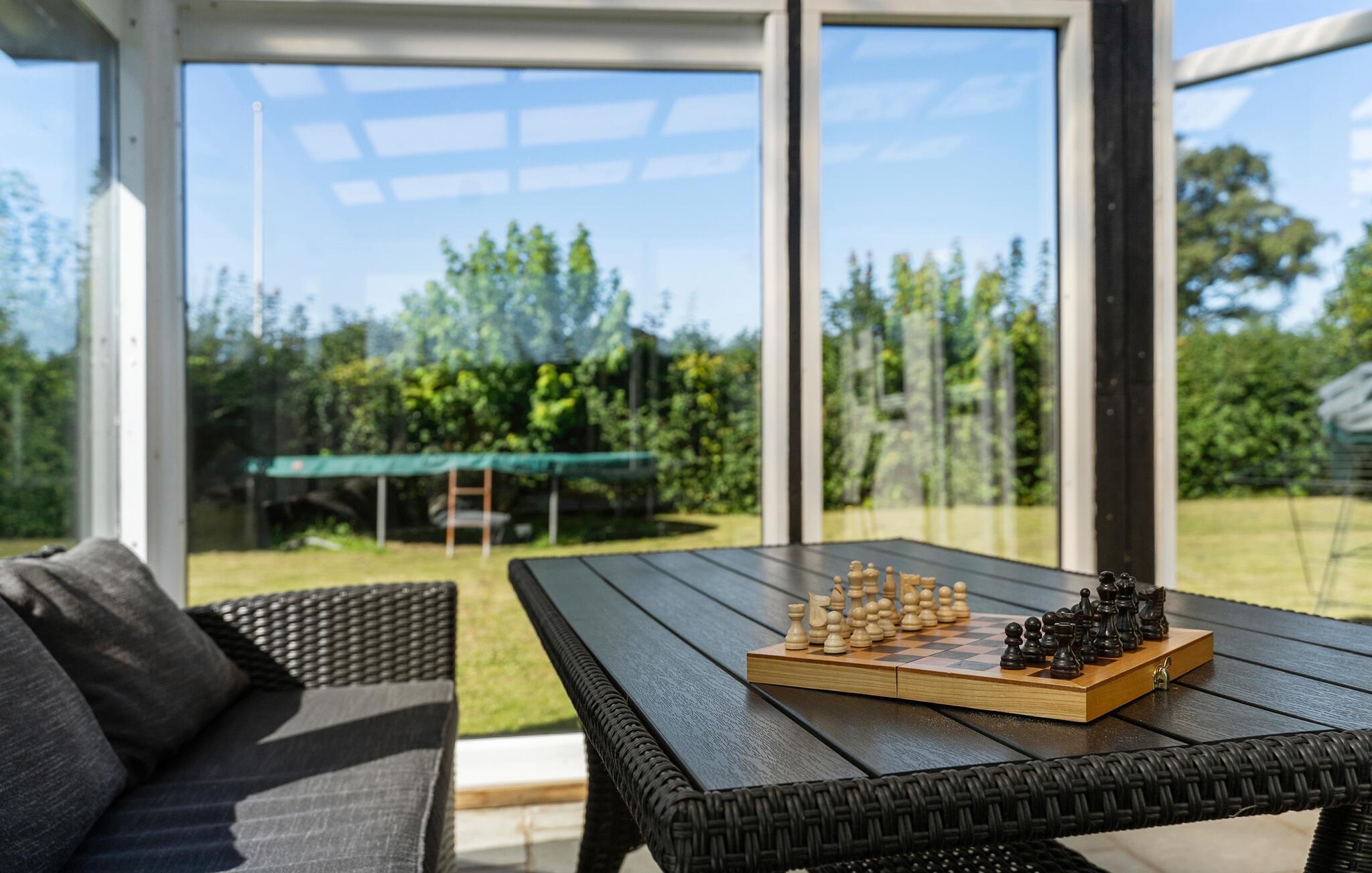 Nur wenige Schritte vom Sandstrand entfernt, bietet Ihnen dieses charmante Ferienhaus ein behagliches Refugium in ruhiger Lage. Bereiten Sie Ihre Lieblingsmahlzeiten aus regionalen Produkten zu und planen Sie Ihre Ausflüge bei entspannten Mahlzeiten. Nach einem langen Tag an der frischen Seeluft können Sie es sich für einen Film auf dem Sofa gemütlich machen oder im verglasten Wintergarten einen Spieleabend veranstalten.