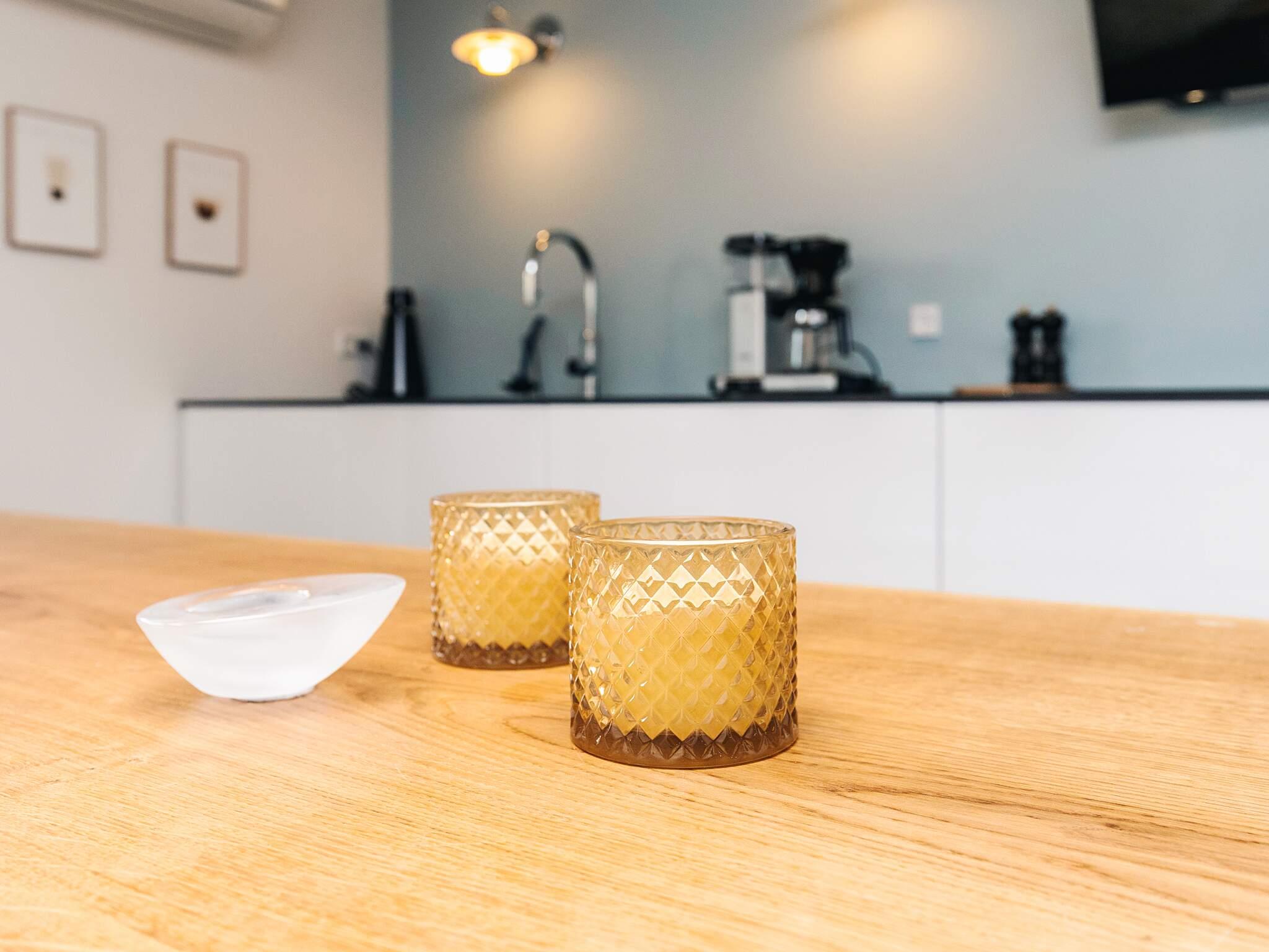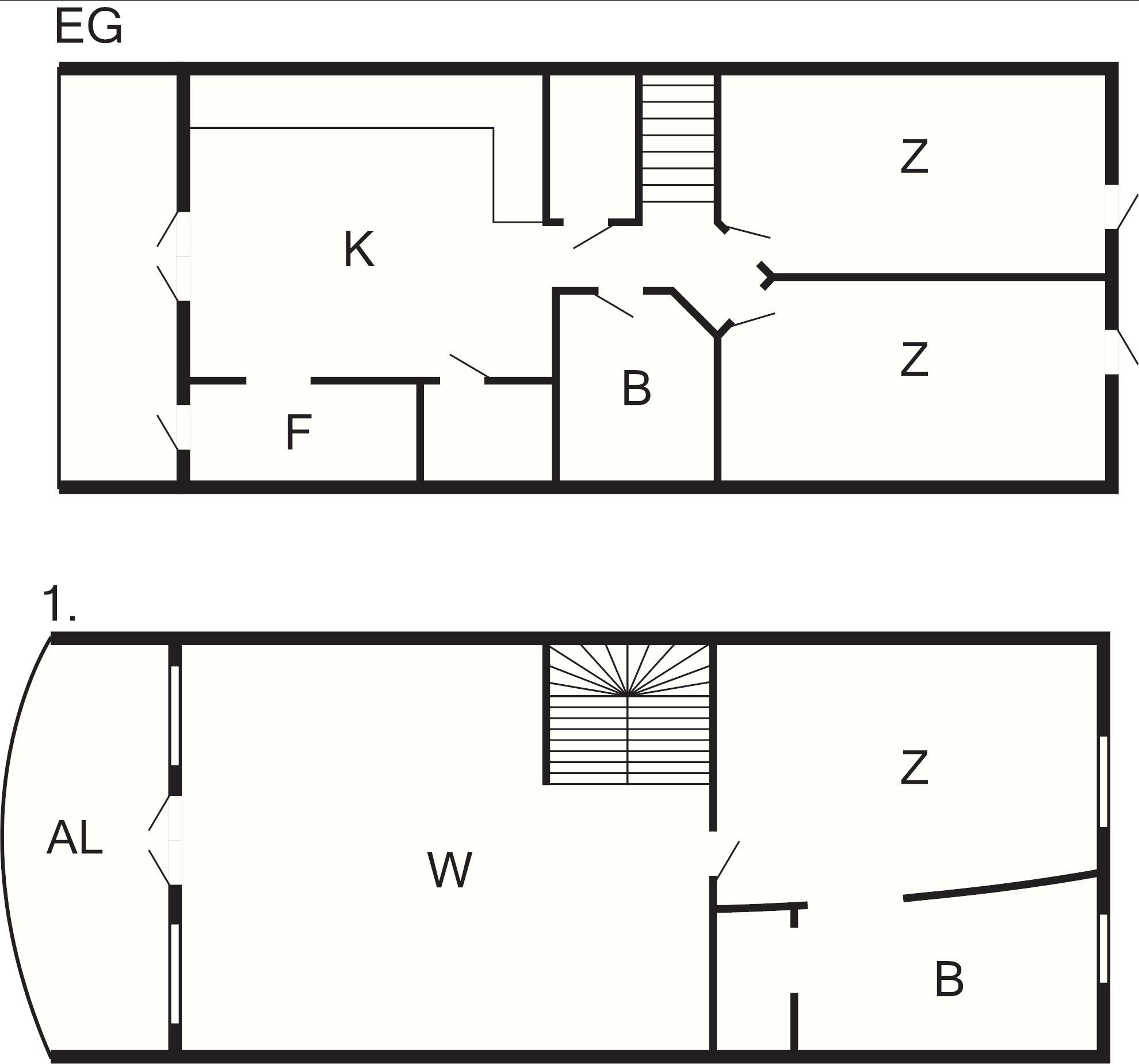 Das Erdgeschoss besteht aus zwei Schlafzimmern mit Doppelbett bzw. einer doppelten Schlafcouch, sowie einer Küche und einem Badezimmer, während die obere Etage mit sichtbaren Balken ein Wohnzimmer, ein 3. Zimmer mit Doppelbett sowie ein 2. Badezimmer bereitstellt. Es gibt daher reichlich Platz für eine Familie oder für bis zu 6 Freunde im Ferienhaus.