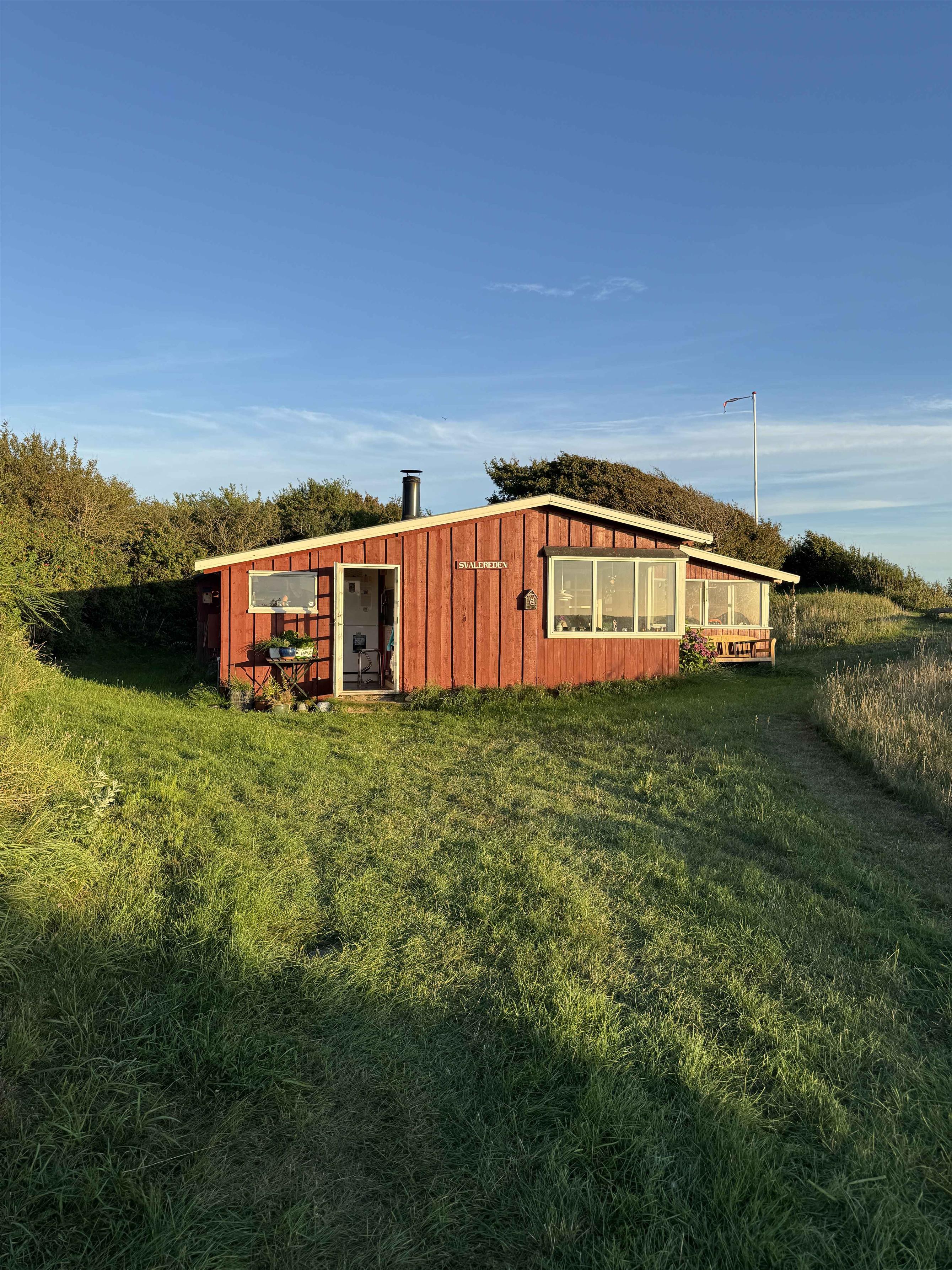 Ægte gammelt sommerhus på Røsnæs – som det var for 100 år siden Det er slidt. Det er autentisk. Det er primitivt – og det er fantastisk, hvis du elsker den slags. Hvad du får: • Den mest vanvittigt smukke udsigt over Kalundborg fjord, du nogensinde kommer til at vågne op til. Havet ligger lige udenfor døren, marker bag, med heste og Stubs vintårn i horisonten, omgivet af vinmarker. • Stor, overdækket sydvendt veranda – perfekt til rødvin, mens solen går ned i havet. • Nærmeste nabo er Røsnæs Strandhotel og Stub vingård. Man kan se hjem, når man nyder et glas vi ved vin tårnet! • Egen badebro lige neden for huset i sommerhalvåret. • Fantastiske fiskemuligheder fra kysten . • Stor, vild og naturskøn grund med masser af plads til at være sig selv. Hvad du IKKE får: • Indendørs toilet, men dog bad - sågar med varmt vand. Toilettet står i gården – men det er heldigvis et rigtigt træk-og-slip. • Opvaskemaskine får du ikke, men med den udsigt, så gider man godt vaske op i hånden! • Ingen wifi. Men fin mobil dækning og tonsvis af bøger. Dette sommerhus er til dig, der drømmer om at leve som i 1920’erne – bare en uge eller to. Til dig, der vil have ro, hav, natur og en følelse af at træde 100 år tilbage i tiden – uden at gå på kompromis med beliggenhed. Perfekt til par, skrive ophold, små familier eller venner, der kan lide det simple liv og ikke er bange for lidt vindueskarm-støv og knirk.
