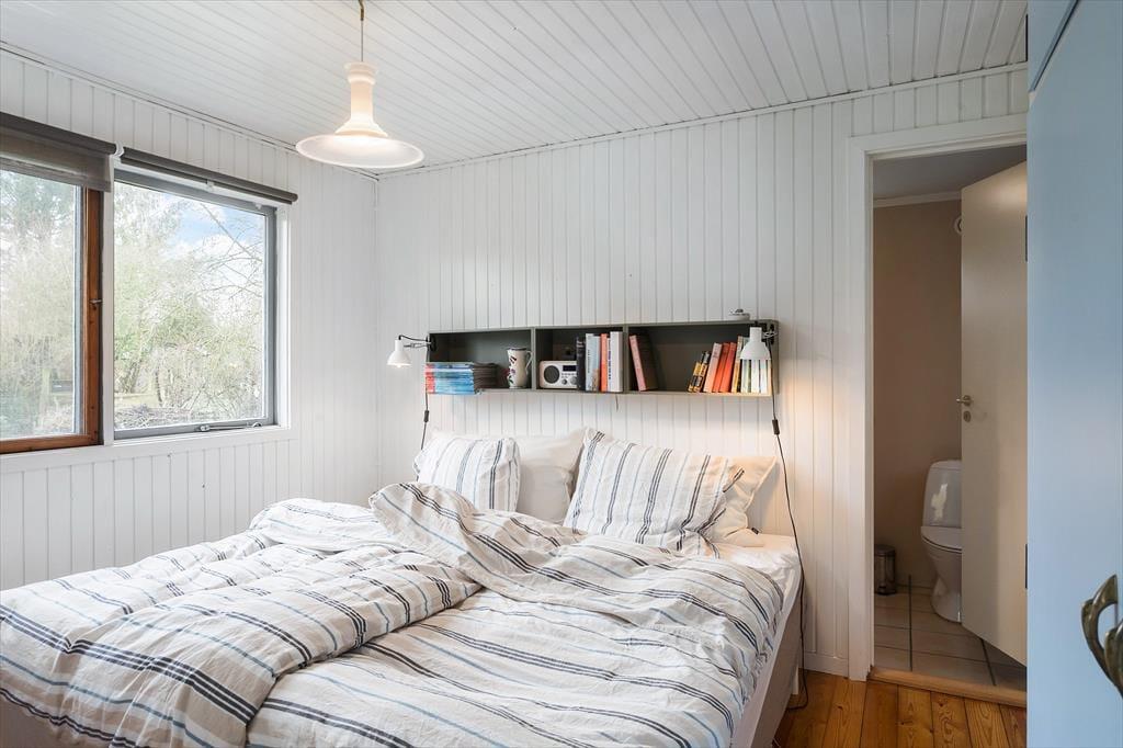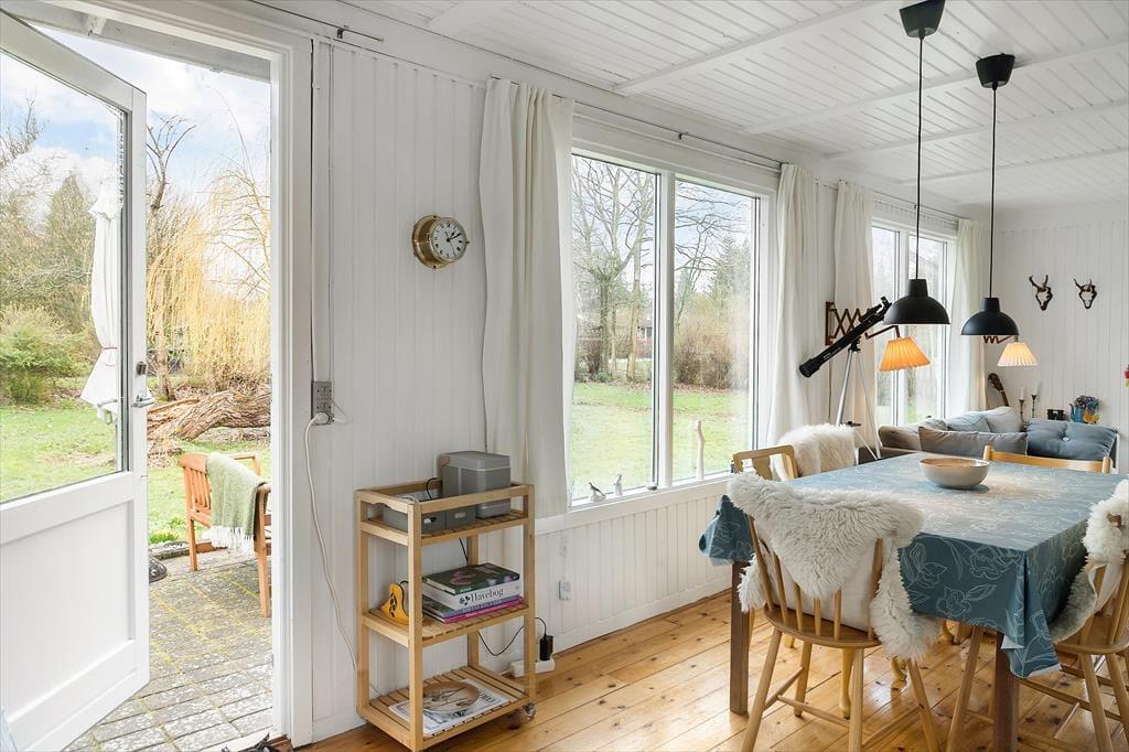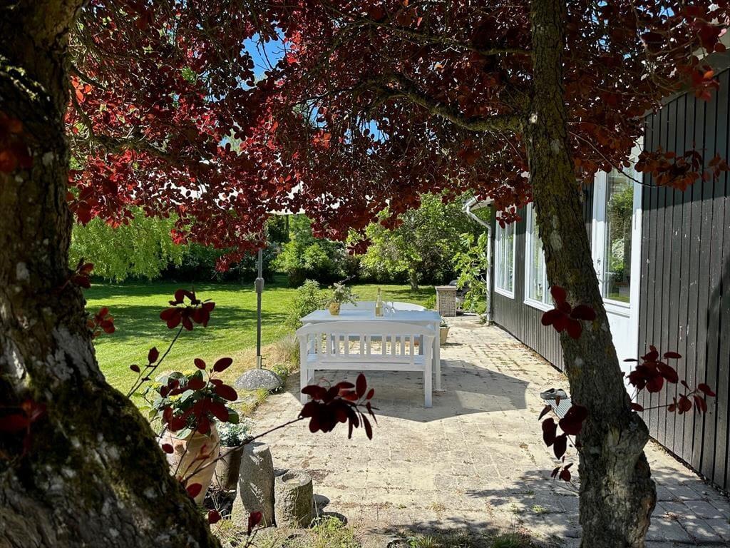 Das Sommerhaus ist von einem schönen großen Garten mit Bäumen umgeben und verfügt über mehrere gemütliche Terrassen. Hier können Sie die warmen Tage und Abende genießen. Im Garten kann man schamlos sein und die Zeit des Beisammenseins bei der ersten Mahlzeit des Tages genießen. Hier finden Sie Raum für Gemütlichkeit, Entspannung und Naturerlebnisse und mit etwas Glück erleben Sie vorbeiziehende Rehe im Garten. Vom Haus aus haben Sie nur 130 Meter bis zu einem kleinen Strand, den Sie über eine neue Treppe erreichen.