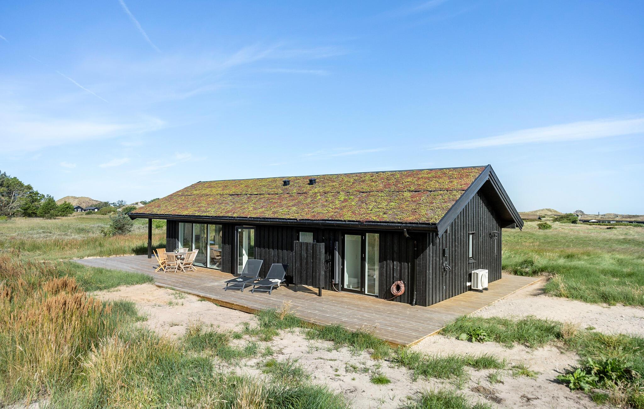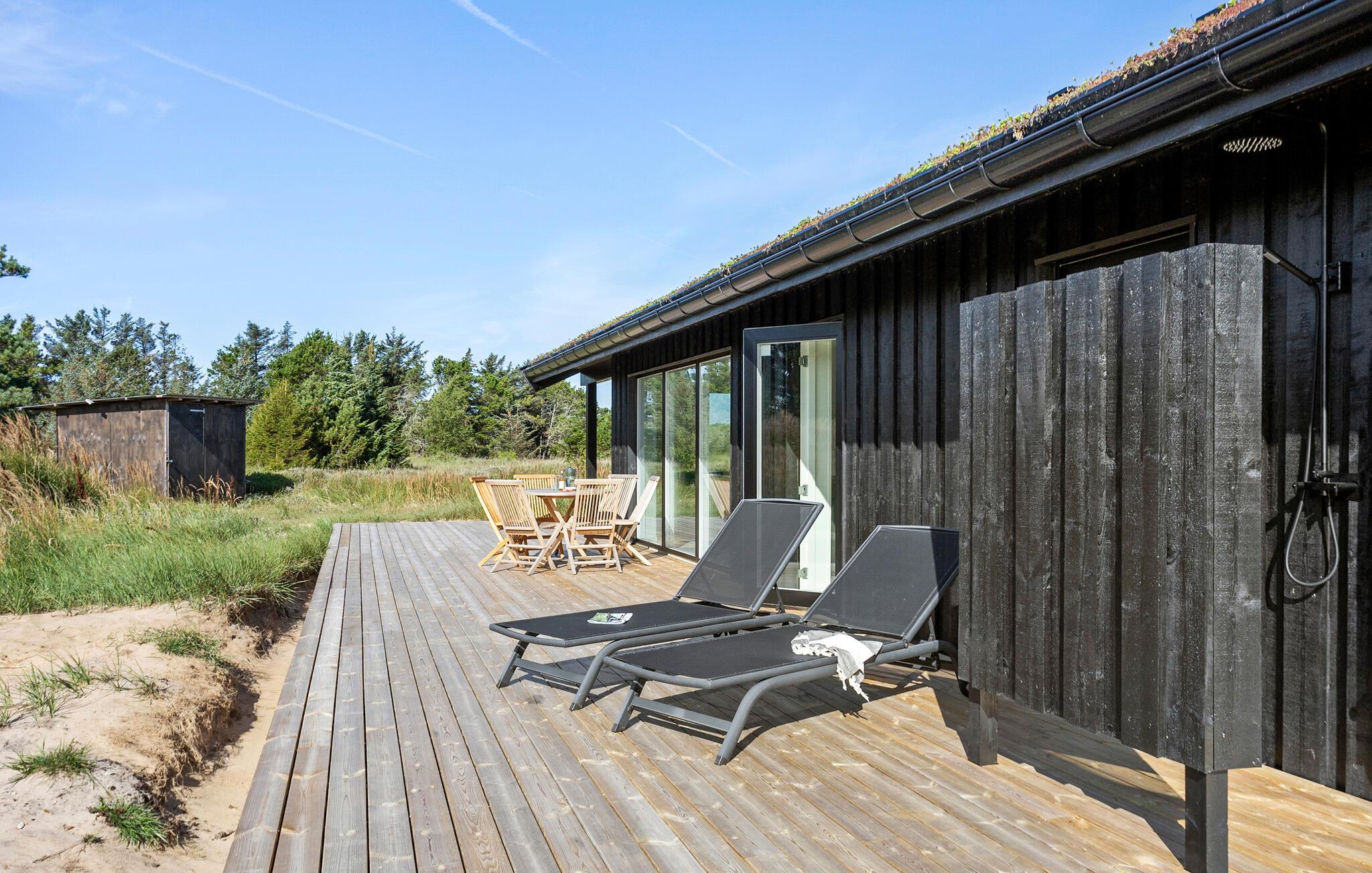 Modernes Ferienhaus in den Dünen von Skagen mit Kamin, Terrasse und großem Naturgrundstück für entspannte Tage.
