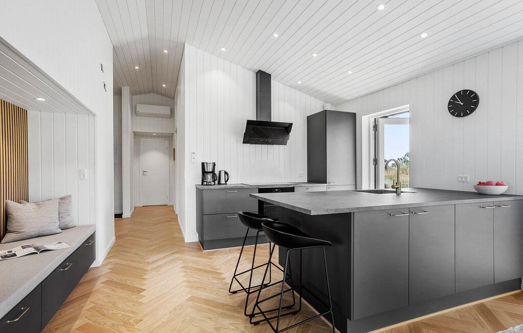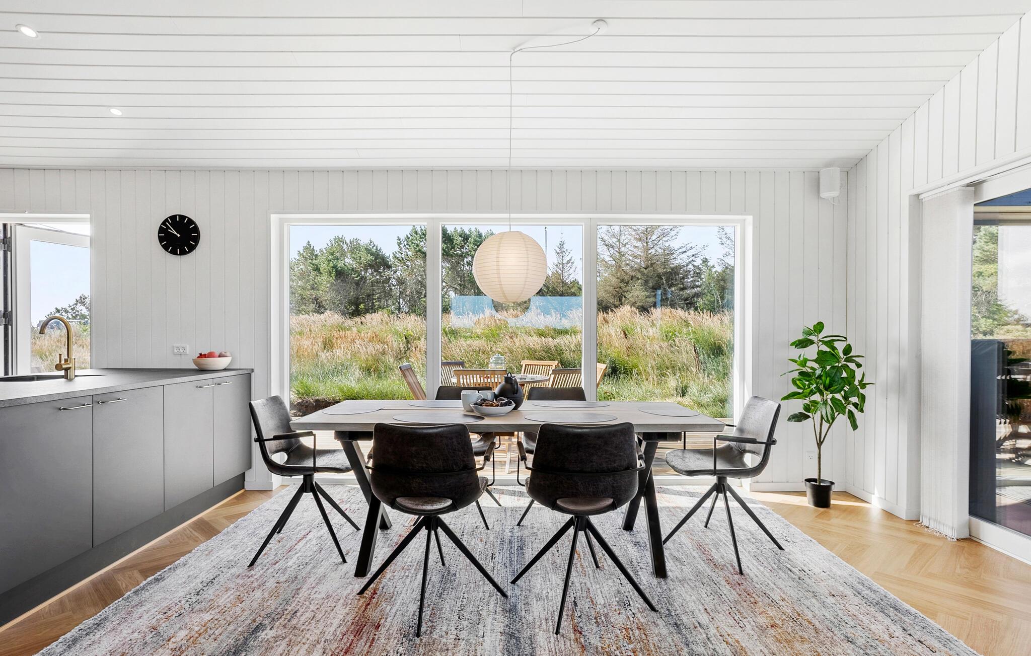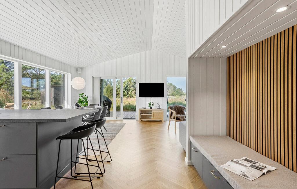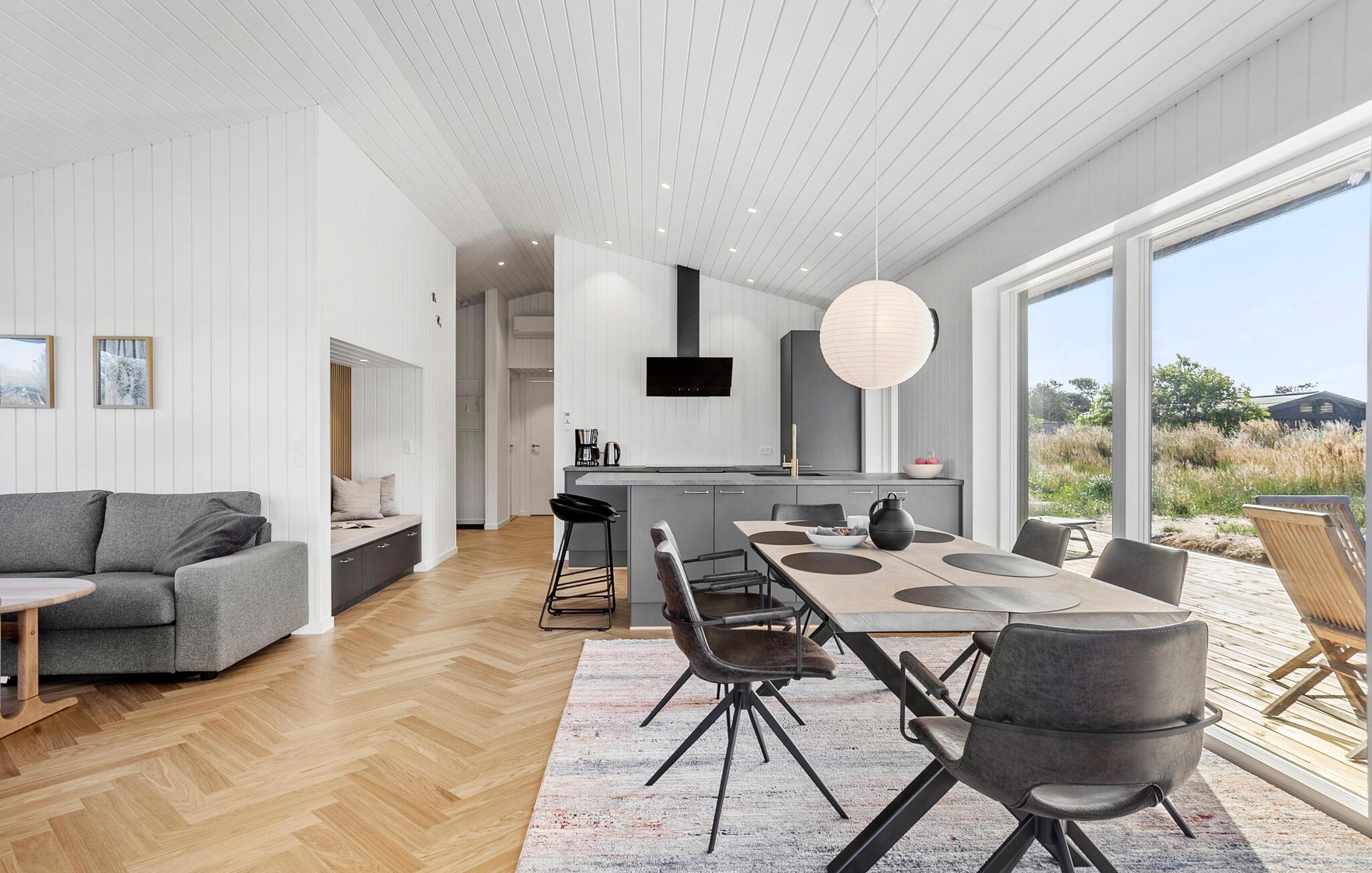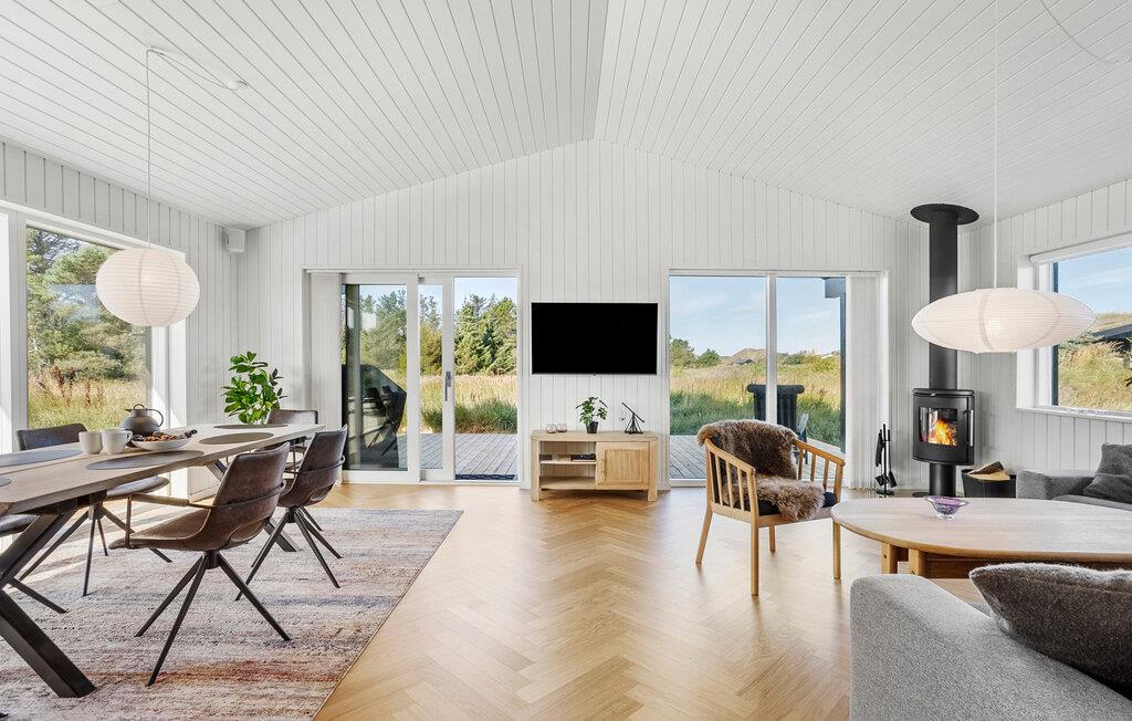 In diesem modernen und komfortablen Ferienhaus erwartet Sie ein heller und stilvoller Innenbereich mit viel Platz für Freunde oder die Familie. Große Fenster lassen viel Tageslicht in die geschmackvoll eingerichteten Räume und eröffnen einen idyllischen Blick auf die malerische Dünenlandschaft. Genießen Sie gesellige Kochabende in der offenen Küche, planen Sie Ihre Unternehmungen am einladenden Esstisch und lauschen Sie dem Pfeifen des Windes, während Sie abends auf dem Sofa entspannen und der Kaminofen den Raum in ein warmes Licht taucht.