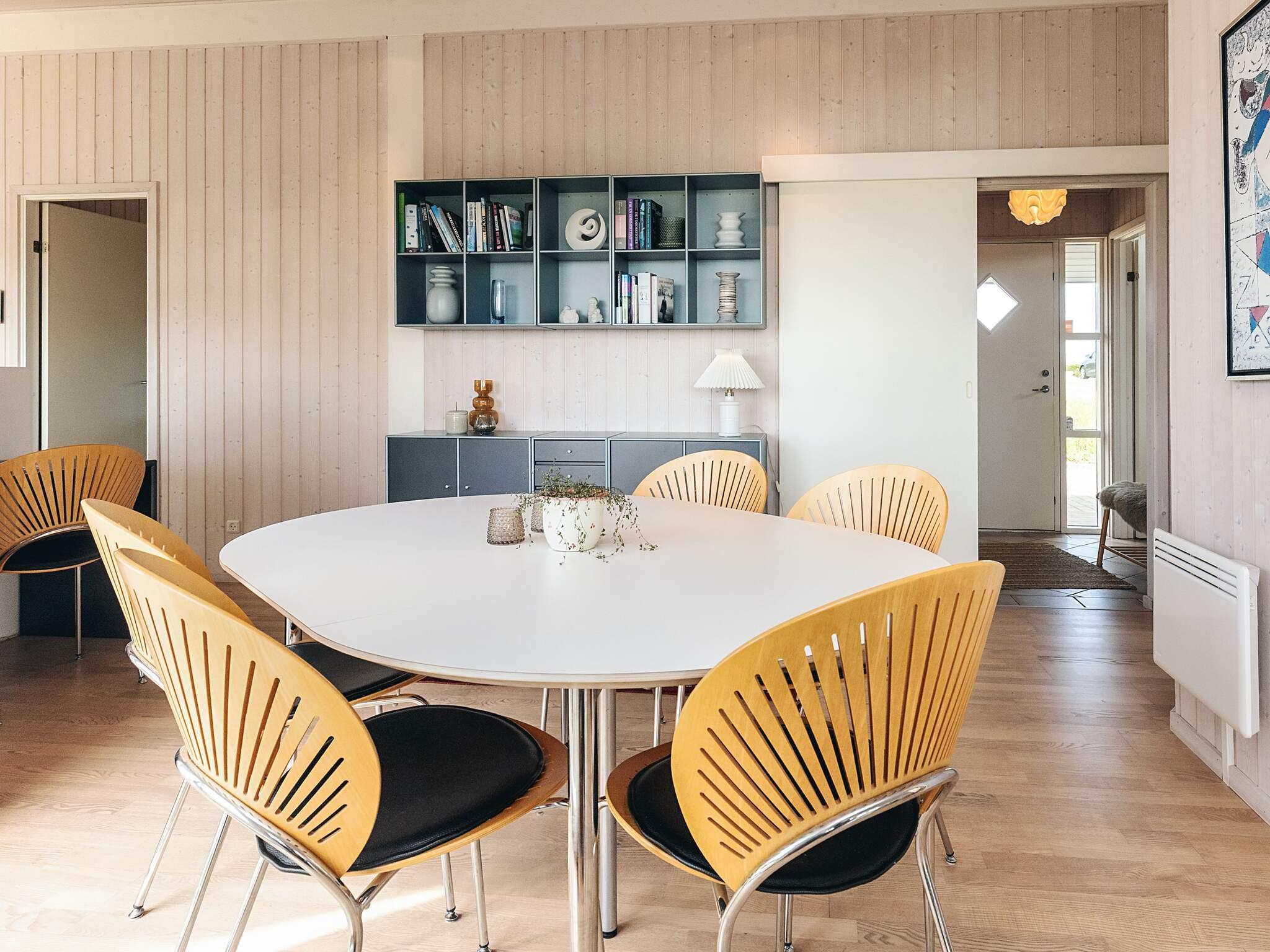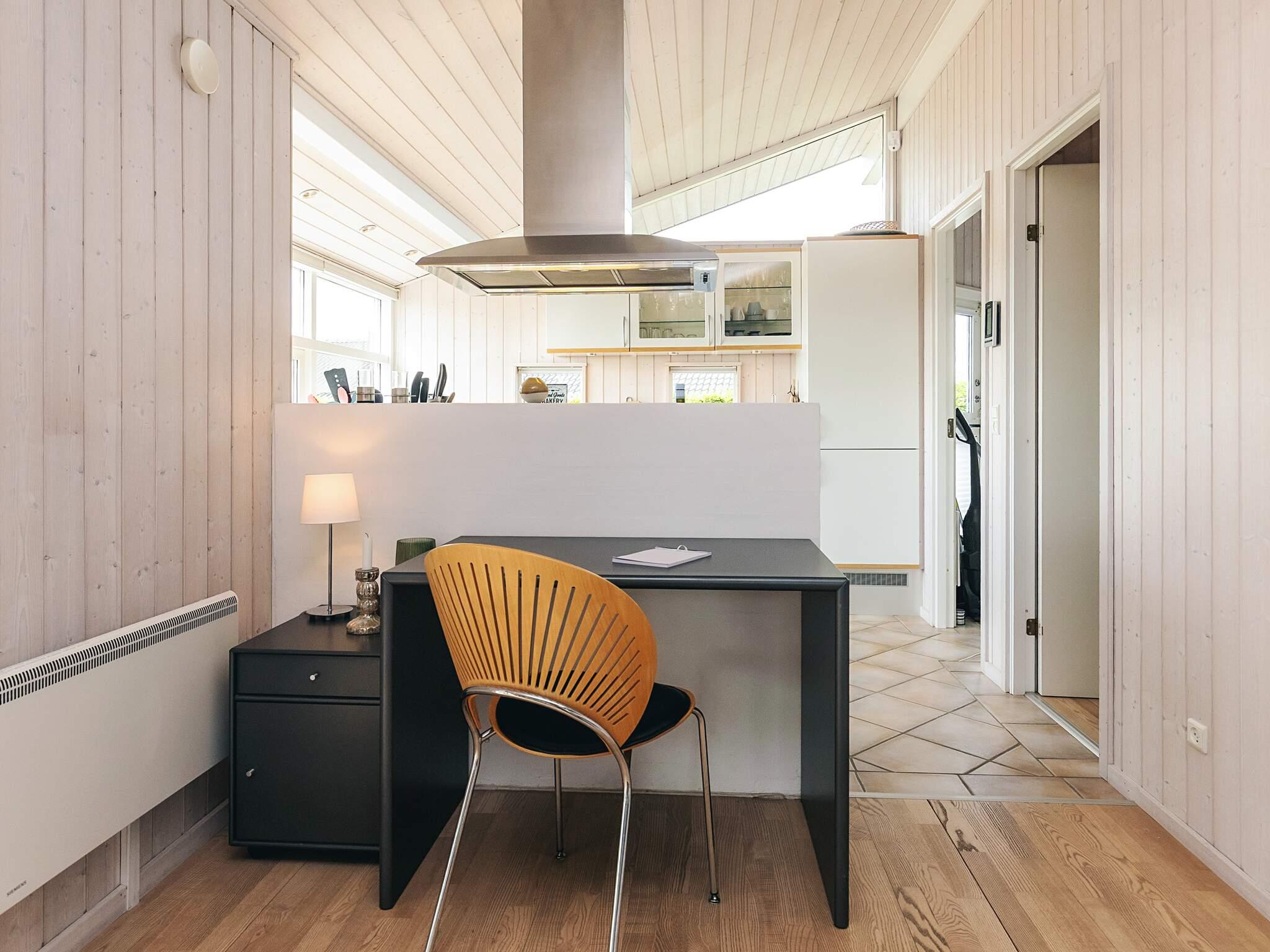 Im Inneren bietet das Ferienhaus eine offene, moderne Küche mit Kühl-/Gefrierschrank, Geschirrspüler und viel Arbeitsfläche, die nahtlos mit dem hellen Wohnzimmer verbunden ist. Im Wohnzimmer gibt es einen gemütlichen Holzofen, einen Fernseher mit Chromecast zum Streamen eigener Dienste und Zugang zu DR. Highspeed-Internet und eine energieeffiziente Wärmepumpe sorgen das ganze Jahr über für Komfort. Ein praktischer Hauswirtschaftsraum mit Waschmaschine bietet zusätzlichen Komfort für längere Aufenthalte.