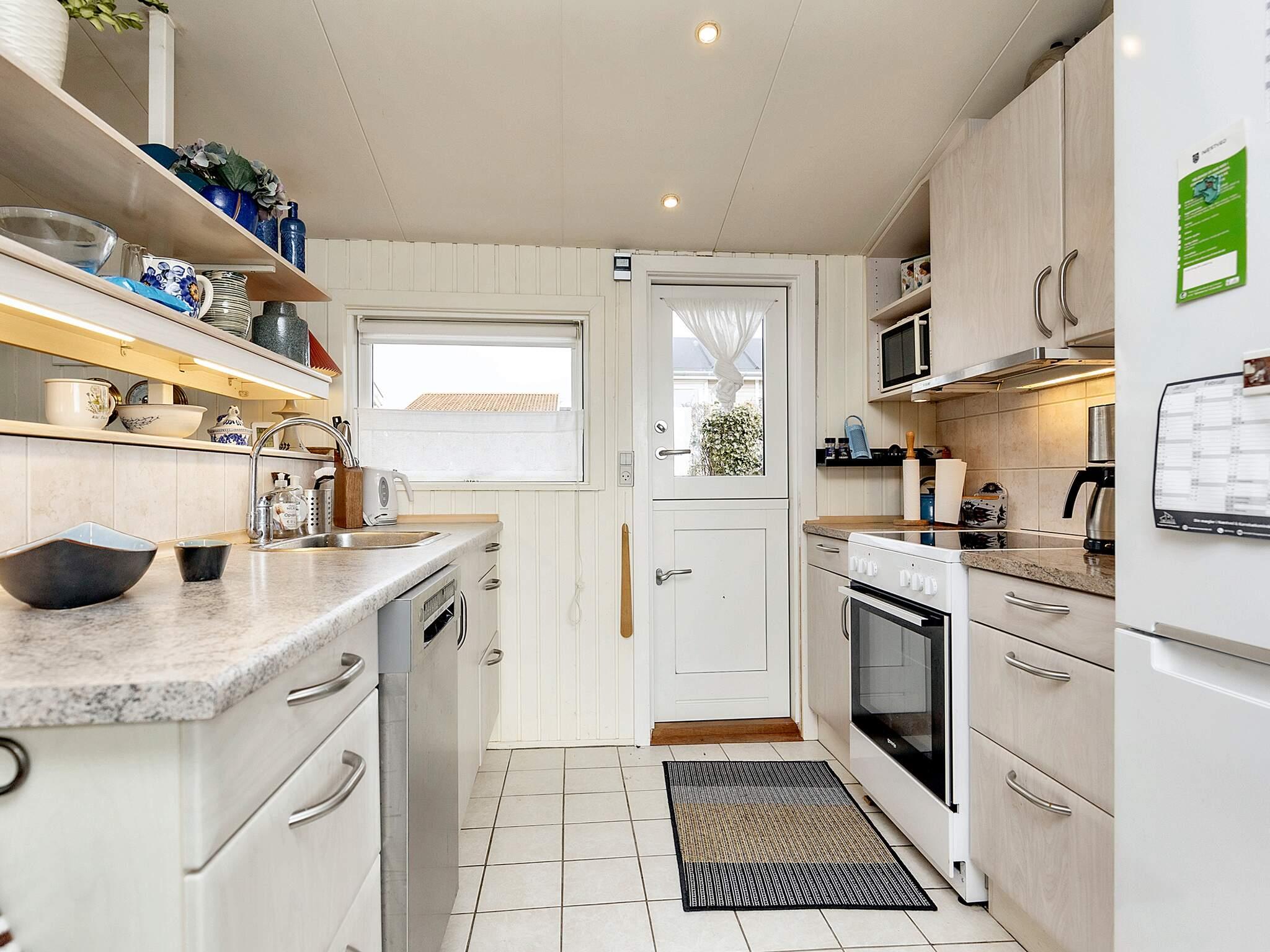 Bei Karrebæksminde/Vesterhave finden Sie dieses zuletzt 2019 renovierte Ferienhäuschen. Es hat einen offenen Küchen-/Wohnbereich für das Familienleben. Im Wohnzimmer gibt es auch einen Holzofen für kühlere Tage, dazu eine klimafreundliche Wärmepumpe. Fernseher für eigene Streaming-Dienste (Chromecast zugänglich). Vom Wohnzimmer aus hat man Zugang zu einem erhöht gelegenen Wintergarten und weiter zur Terrasse mit etwas Meerblick an klaren Tagen. Außerdem separates Schlafzimmer mit einem Doppelbett (160x200 cm), dazu ein Etagenbett mit zwei Kojen sowie eine extra Liege unterhalb der unteren Koje. Badezimmer mit Toilette, Waschbecken und Dusche.