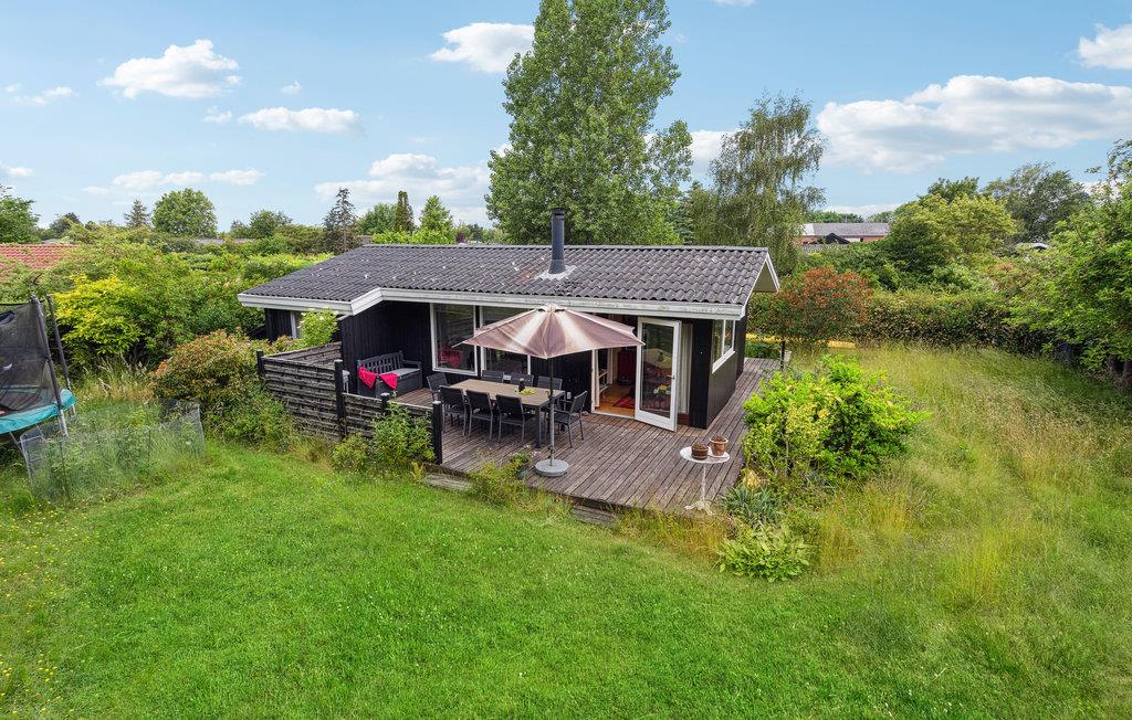 Ein charmantes Ferienhaus in Karrebæksminde mit Kamin, großem Garten und Nähe zum Strand für entspannte Familienurlaube.