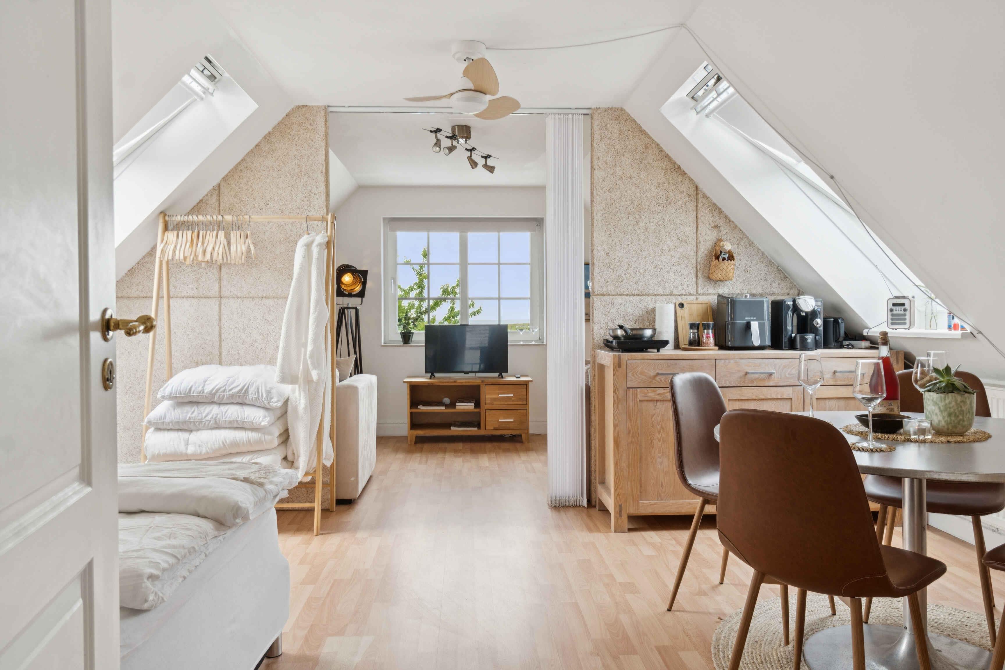 ?? Übernachtung im Weingut Vesterhave – mitten in der Natur, nahe Karrebæksminde und Enø Im Weingut Vesterhave vermieten wir zwei gemütliche Zimmer – ideal für alle, die Ruhe, Nähe und Natur direkt vor der Tür suchen. Die Zimmer sind wohnlich und entspannt eingerichtet – mit eigenem Bad und Teeküche. Sie liegen umgeben von grünen Weinreben und direkt am Waldrand. Genieße den Sternenhimmel am Abend, Vogelgesang am Morgen und eine Atmosphäre, die zum Entschleunigen einlädt. Nur 5 Gehminuten entfernt liegt ein stiller Strand – perfekt für ein morgendliches Bad oder ein Picknick im Sonnenuntergang. Karrebæksminde und Enø mit Hafenflair, Cafés und guten Restaurants sind in der Nähe – aber weit genug entfernt für Stille und Weite. ?? Als Gast bekommst du: 1 oder 2 charmante Zimmer mit Naturblick Kurzer Fußweg zu Strand und Wald Sternenbeobachtung vom Garten oder Weinberg Weinreben direkt vor der Tür Weinproben mit lokalem Wein zubuchbar Kostenlose Audiotour durch die Weinberge und Geschichte des Weinguts Fahrradverleih – ideal zur Erkundung der Umgebung Ob Ruhe, Natur, Wein oder Kulinarik – hier erwartet dich ein sinnliches und unvergessliches Erlebnis.
