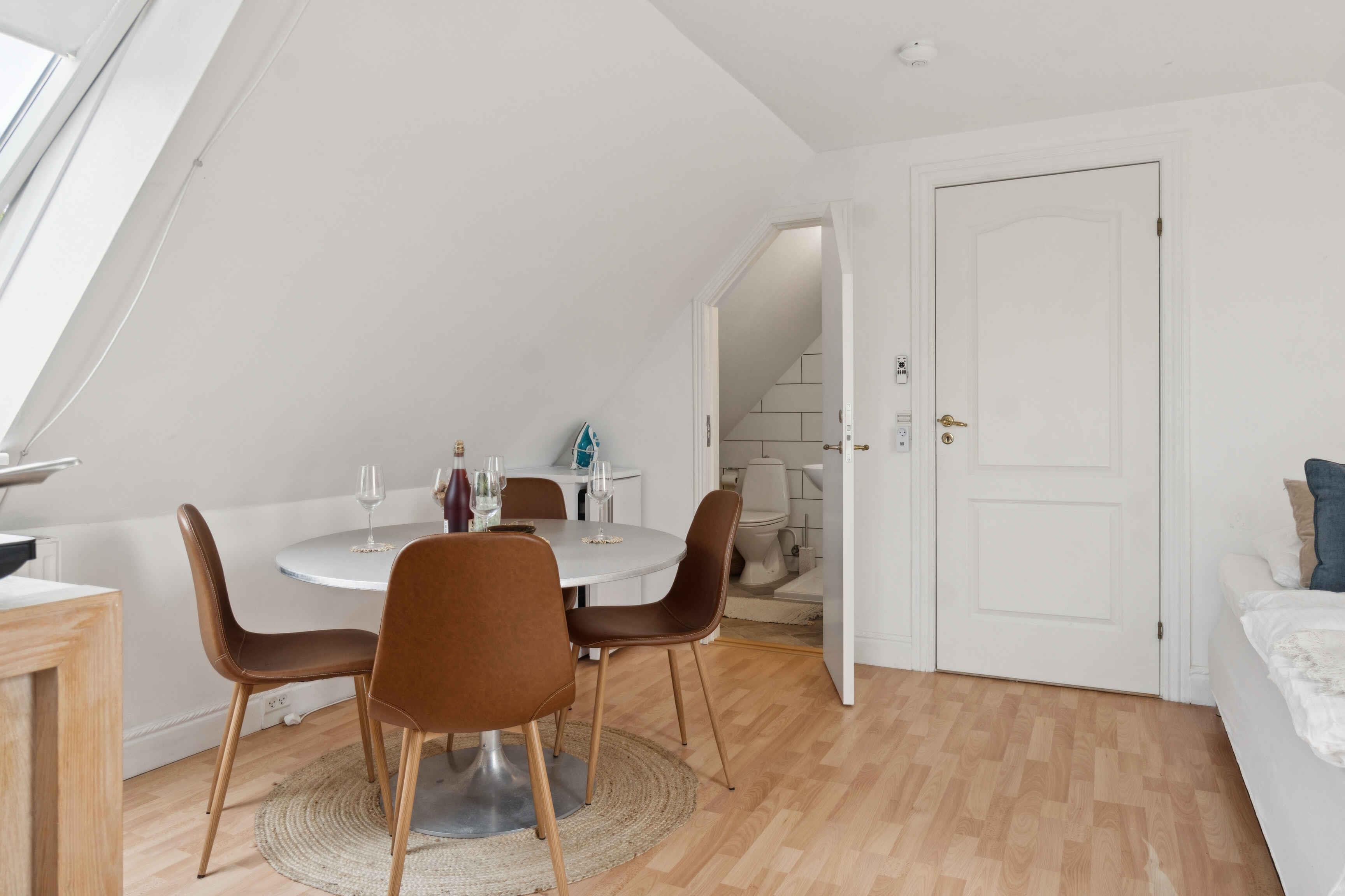 Gemütliche kleine Ferienwohnung mit Teeküche, NEUEM Bad/WC, hell und einladend, Internet, wunderschöner Blick auf Fjord und Weinberge.