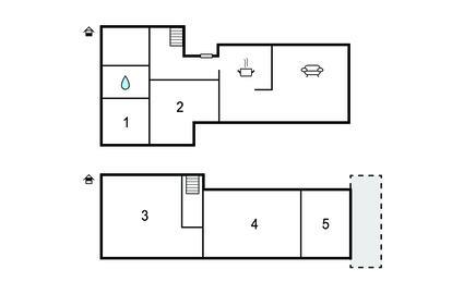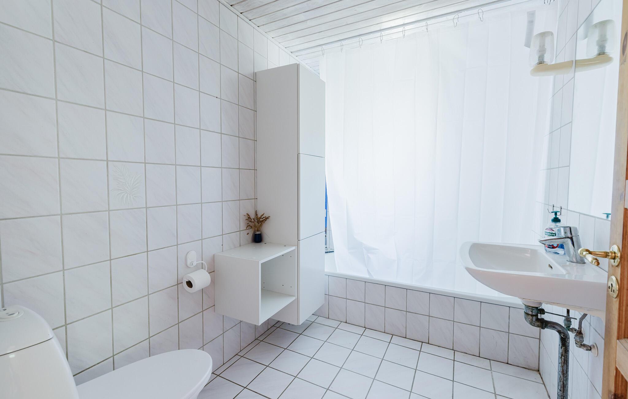 Badezimmer (nr. 1) - WC. Warmes und kaltes Wasser. Dusche und Badewanne