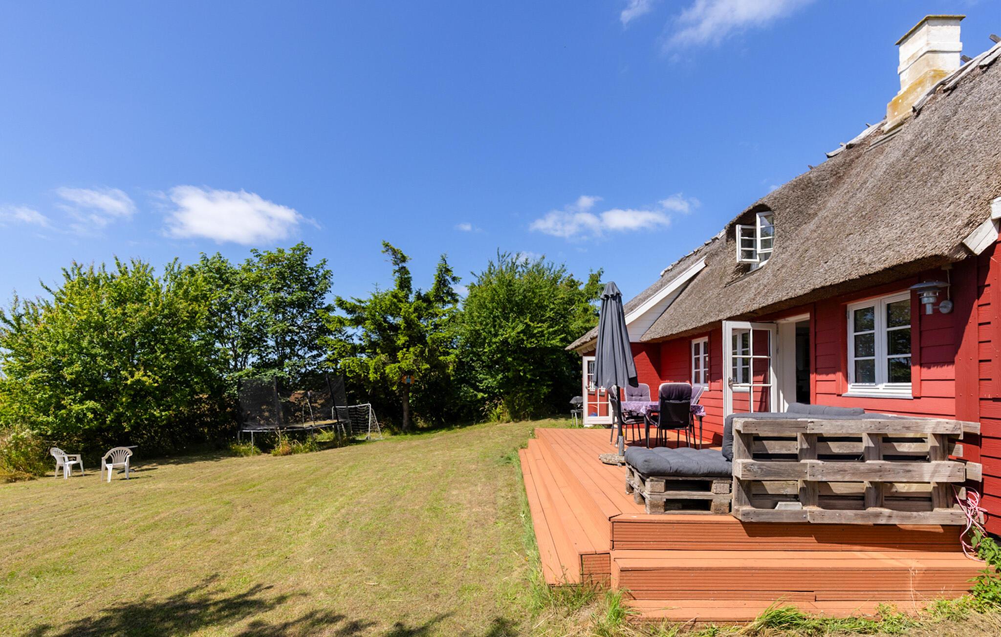 Charmantes reetgedecktes Ferienhaus mit Meerblick, Garten und Nähe zum Strand in Karrebæksminde.