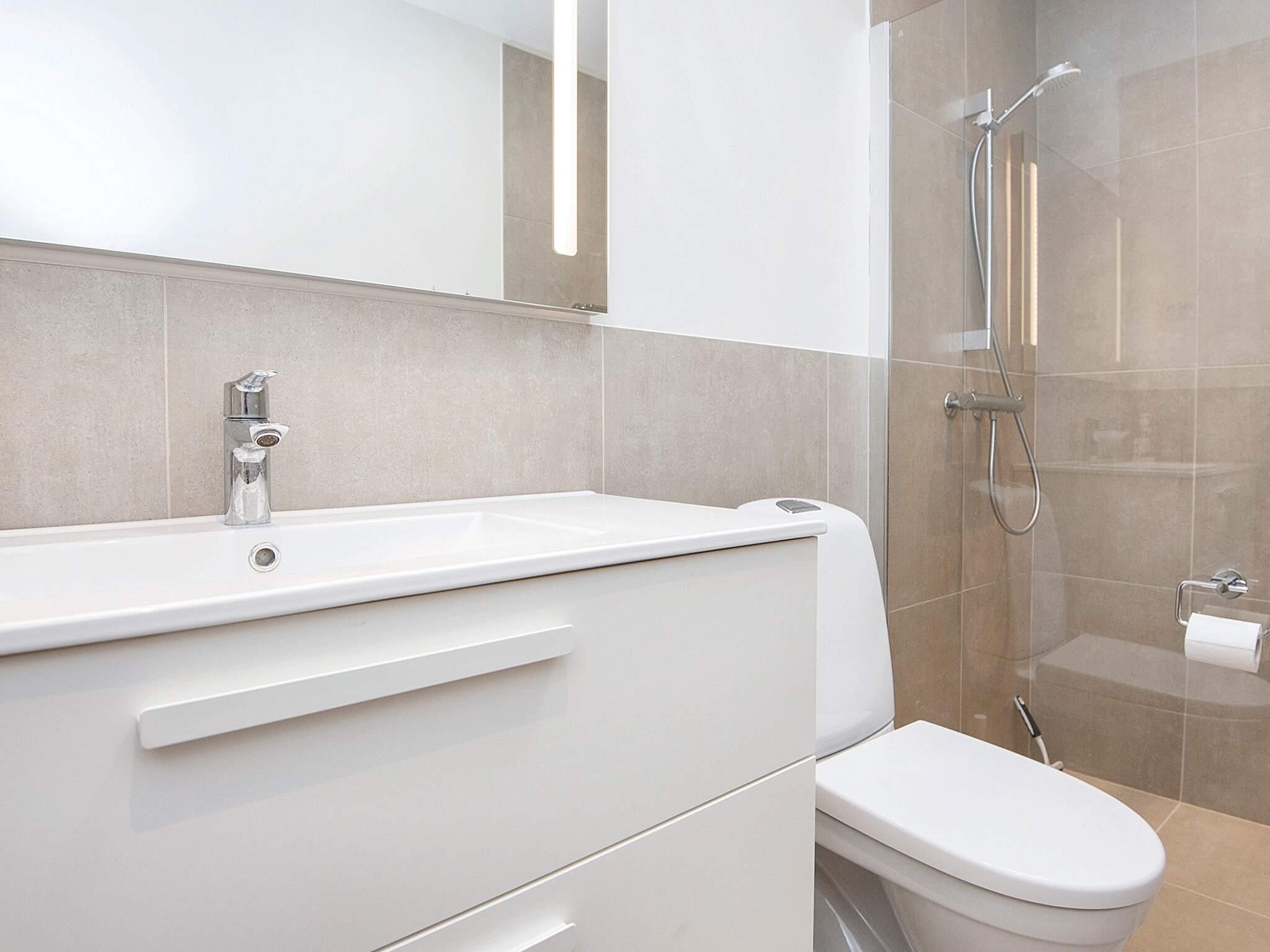 Bad: Waschm., WC, Waschb., Dusche, Fußbodenheiz.