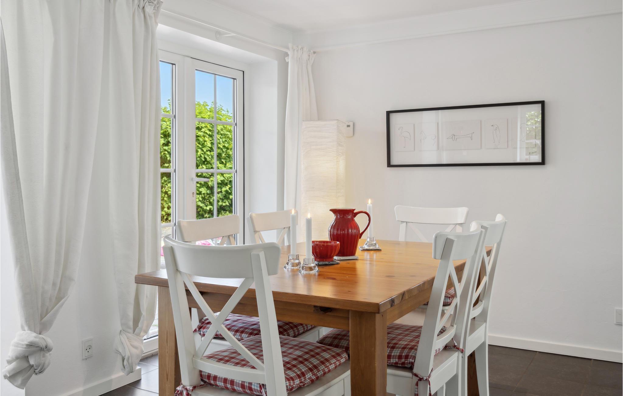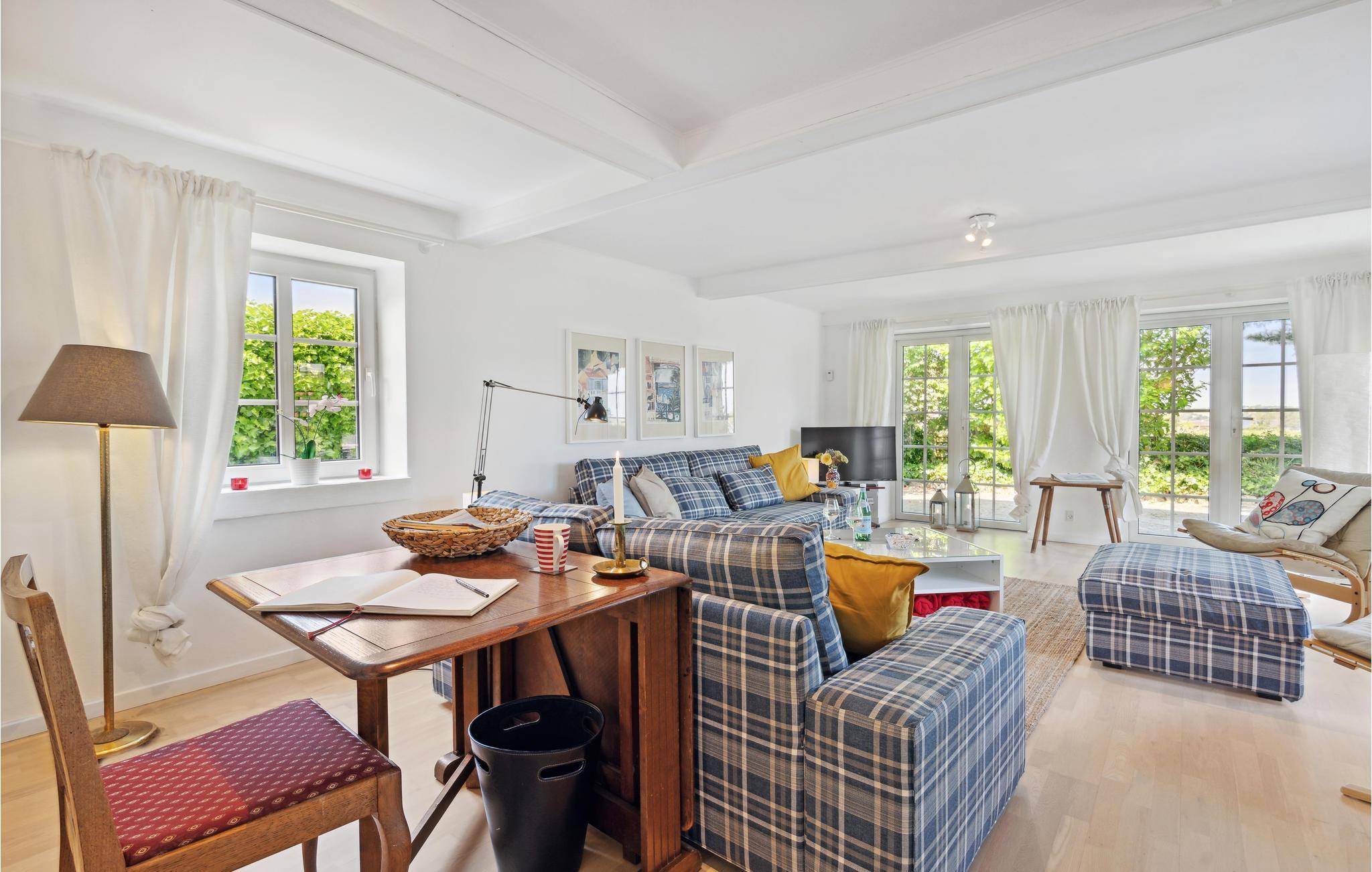 Das idyllisch anmutende Ferienhaus liegt auf der Halbinsel Kegnæs. Vom Haus, der Terrasse und vom Balkon haben Sie eine schöne Aussicht auf das Meer. Die gut ausgestatte Küche ist zum Wohnzimmer offen, wo auch ein Kaminofen steht. Zwei der drei Schlafzimmer liegen im Obergeschoss. Zum Surfen im Internet steht Ihnen im ganzen Haus Wi-Fi zur Verfügung. Kegnæs hat ausgezeichnete Sandstrände und diese liegen nicht weit vom Haus. Sie finden schöne Dünen und Senken, im Sand können Sie Muscheln finden. An der Küste können Sie auch gut angeln: Lachs, Dorsch, Scholle und Hornfisch. Mit Augustenborg Slot (1770) liegt auch ein sehenswertes Schloss in der Region. Es gehört auch ein Schlosspark mit sehenwerter Kirche dazu.