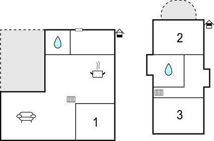 Badezimmer (nr. 1) - WC. Warmes und kaltes Wasser. Dusche
