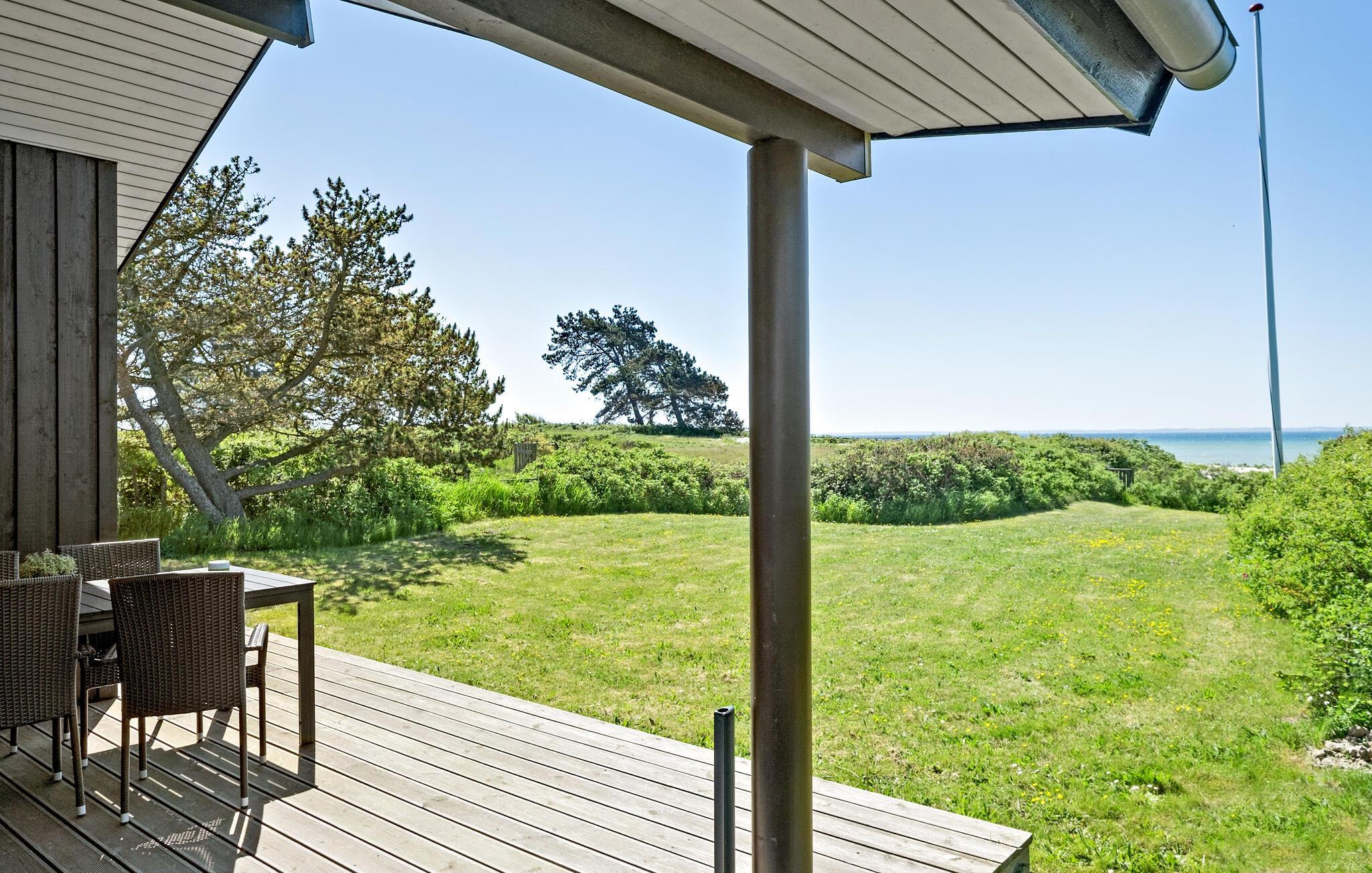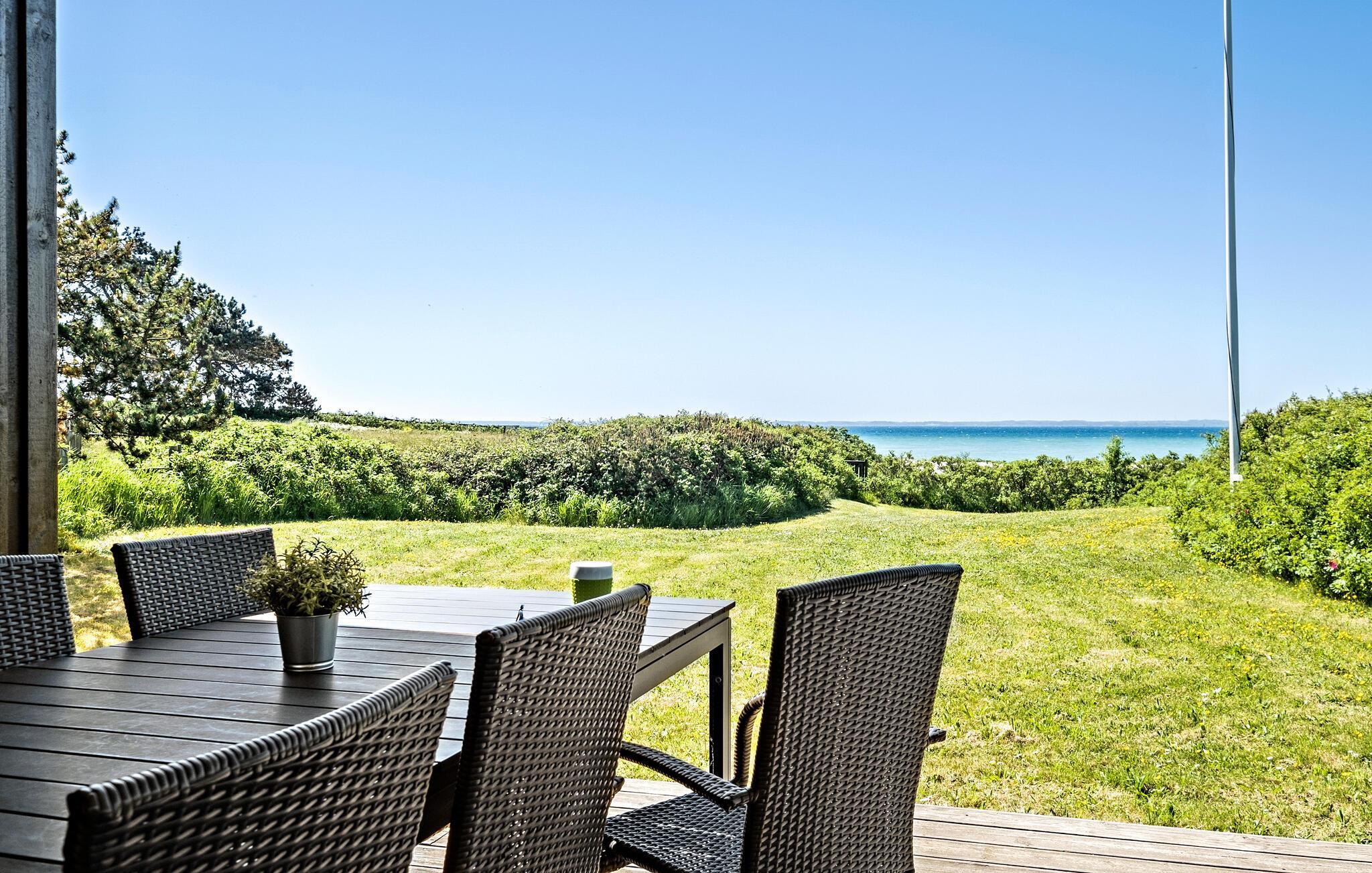 Dieses moderne Ferienhaus am Kegnæs Strand bietet direkten Meerblick, eine große Terrasse und komfortable Ausstattung für einen erholsamen Urlaub.