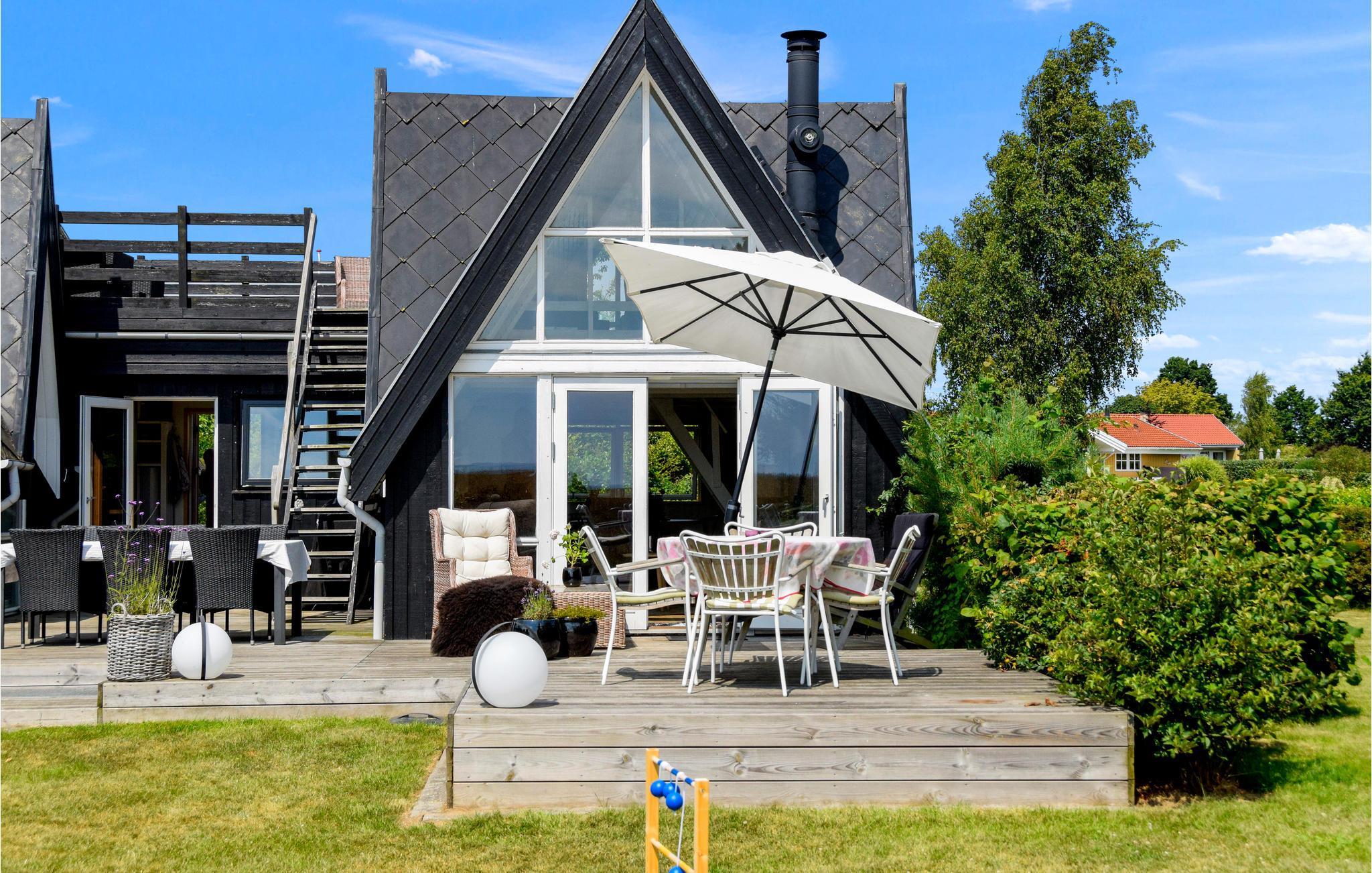 Gemütliches Ferienhaus mit Meerblick, Terrasse und finnischem Holzbad auf der Insel Kegnæs in Dänemark.