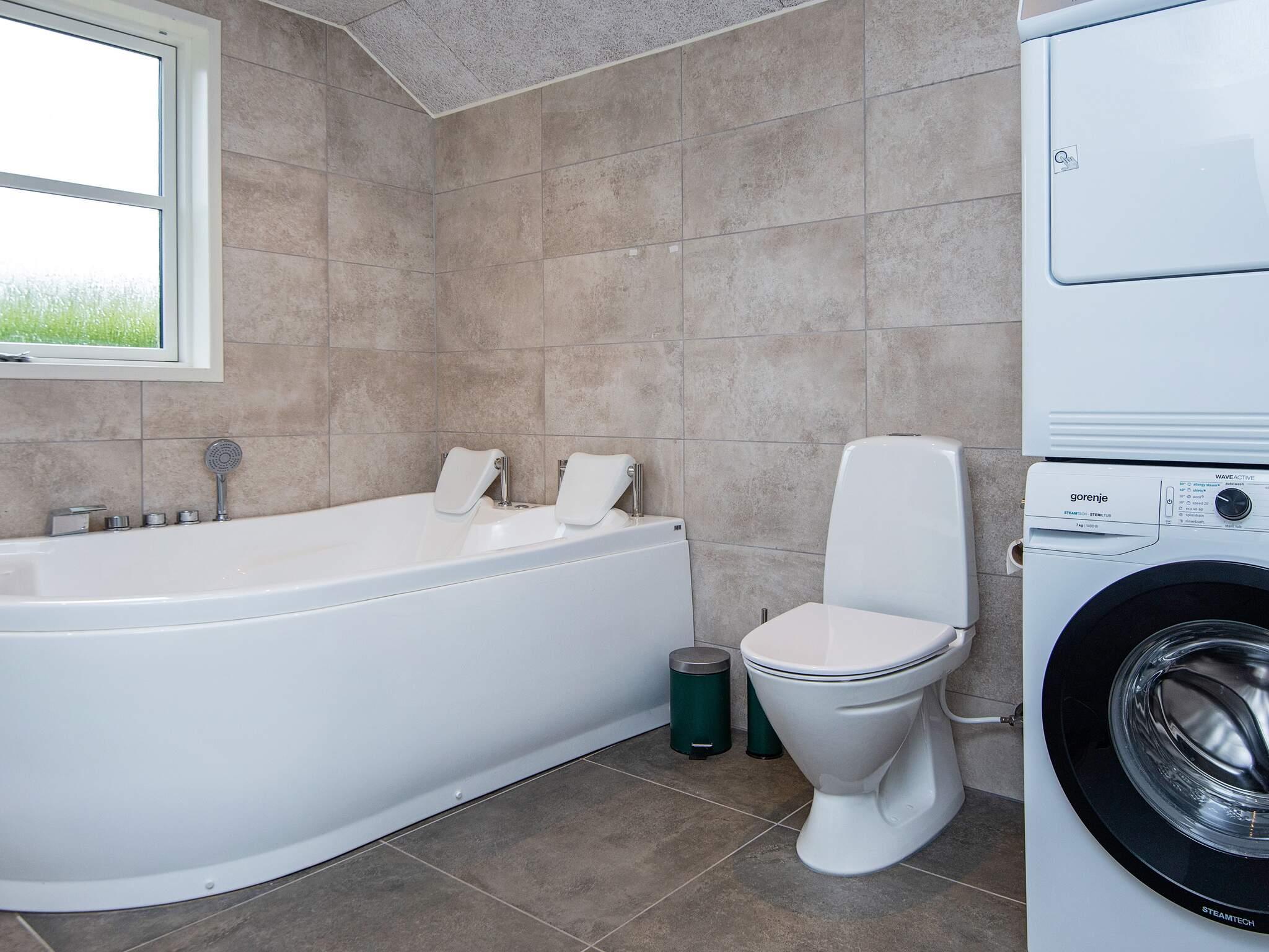Dieses praktisch und hell eingerichtete Ferienhaus ist passend für eine moderne Familie. Von dem geräumigen Küchen/Aufenthaltsbereich gelangt man direkt auf die Terrasse, die einen eingeschränkten Meerblick bietet. Im Badezimmer, das den Whirlpool für 2 Pers. beinhaltet, sind auch Waschmaschine und Trockner untergebracht. Über dem Esstisch gibt es ein Oberlicht, ebenso wie auf dem Hems mit 3 Matratzen, von dem aus man einen tollen Überblick über die Umgebung hat. Eines der SZ hat direkten Zugang zum Garten mit Rasenfläche hinter dem Haus. Zwei Einstellplätze vorhanden. Für die kleinsten Gäste sind eine Schaukel und ein Sandkasten im Garten vorhanden.