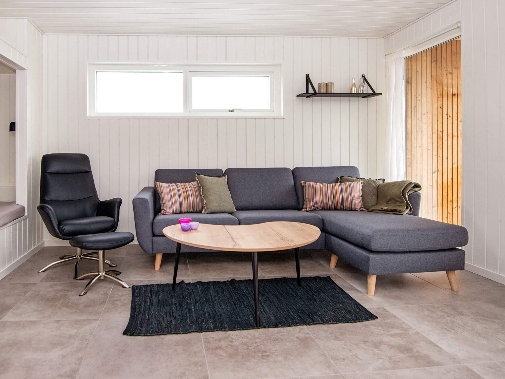 Das Herzstück des Ferienhauses ist der Wohn- und Küchenbereich mit großen Fenstern, die auf die großzügigen Terrassenflächen und das Wasser blicken. Dank der großen Fenster und der hellen Wände wirkt das Haus durchgehend hell.