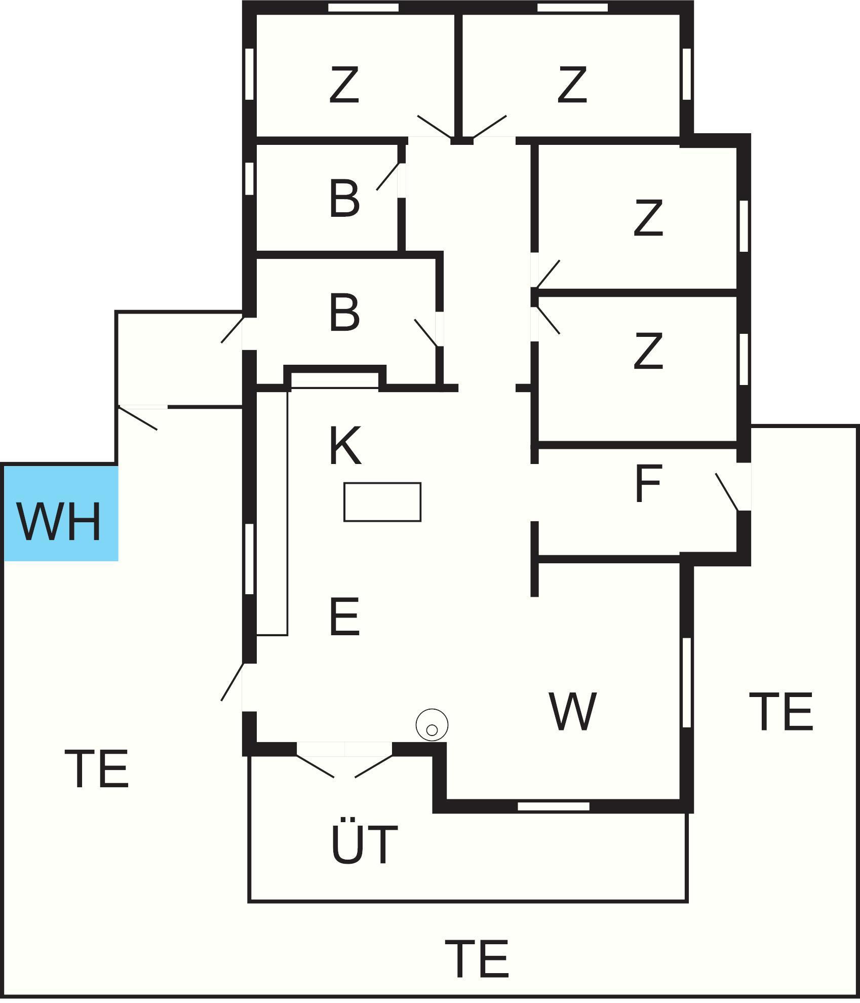 Bad: WC, Waschb., Dusche, Fußbodenheiz.