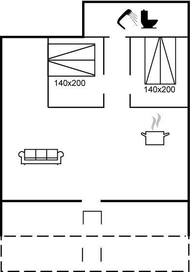 Die Schlafplätze verteilen sich auf 2 Schlafräume. 4 Schlafplätze in Doppelbetten.