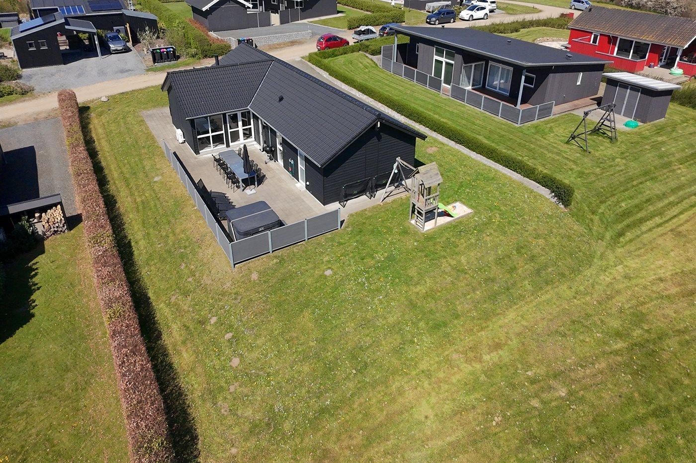 Die Ferienunterkunft liegt auf einem 783 m² großen Gartengrundstück. Die Entfernung zum Meer beträgt 300 m. Es gibt einen Badesteg in der Nähe. Die nächste Einkaufsmöglichkeit liegt 8000 m entfernt. In einem Abstand von 12000 m gibt es einen Golfplatz. Es steht ein 75 m² Terrassenareal zur Verfügung. Schaukel. Sandkasten. Spielturm. Rutsche. Fußballtor. Es steht ein Grill zur Verfügung. Parkplatz auf dem Grundstück.
