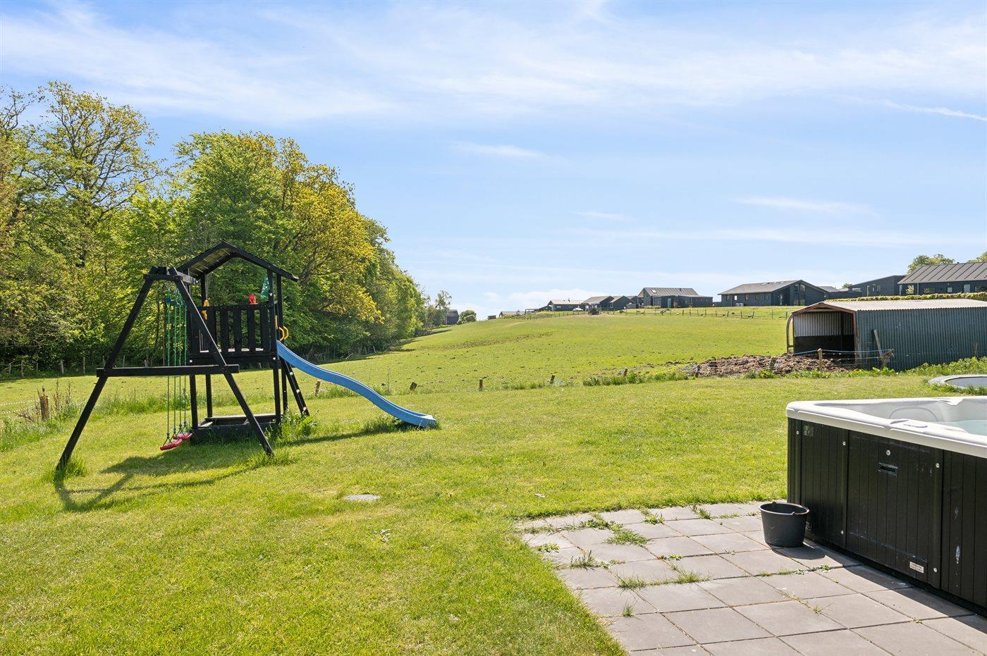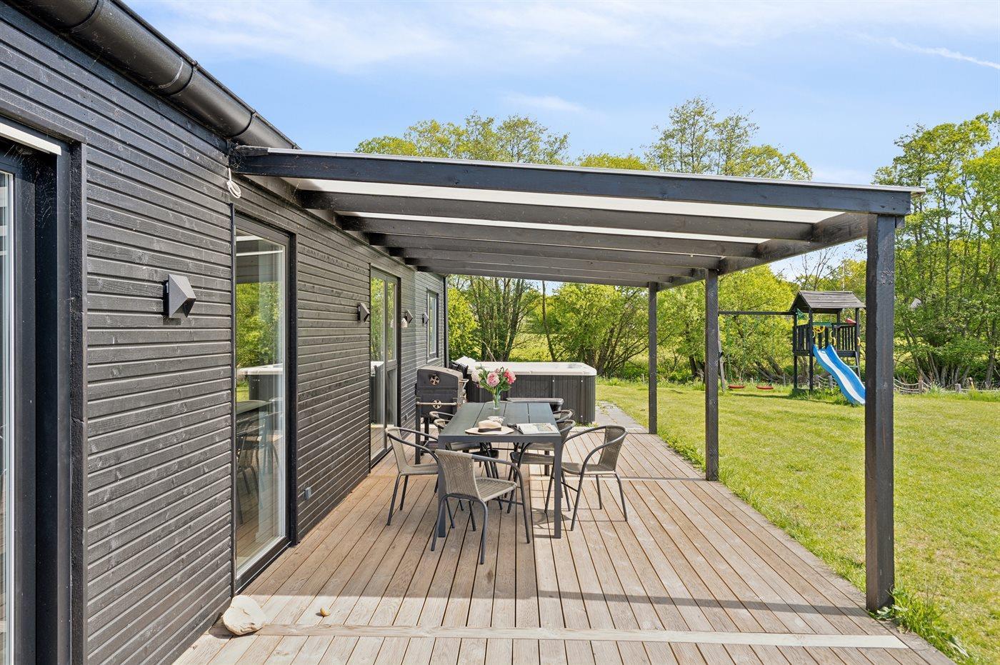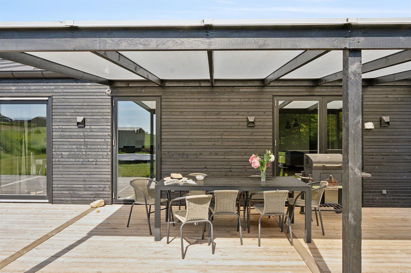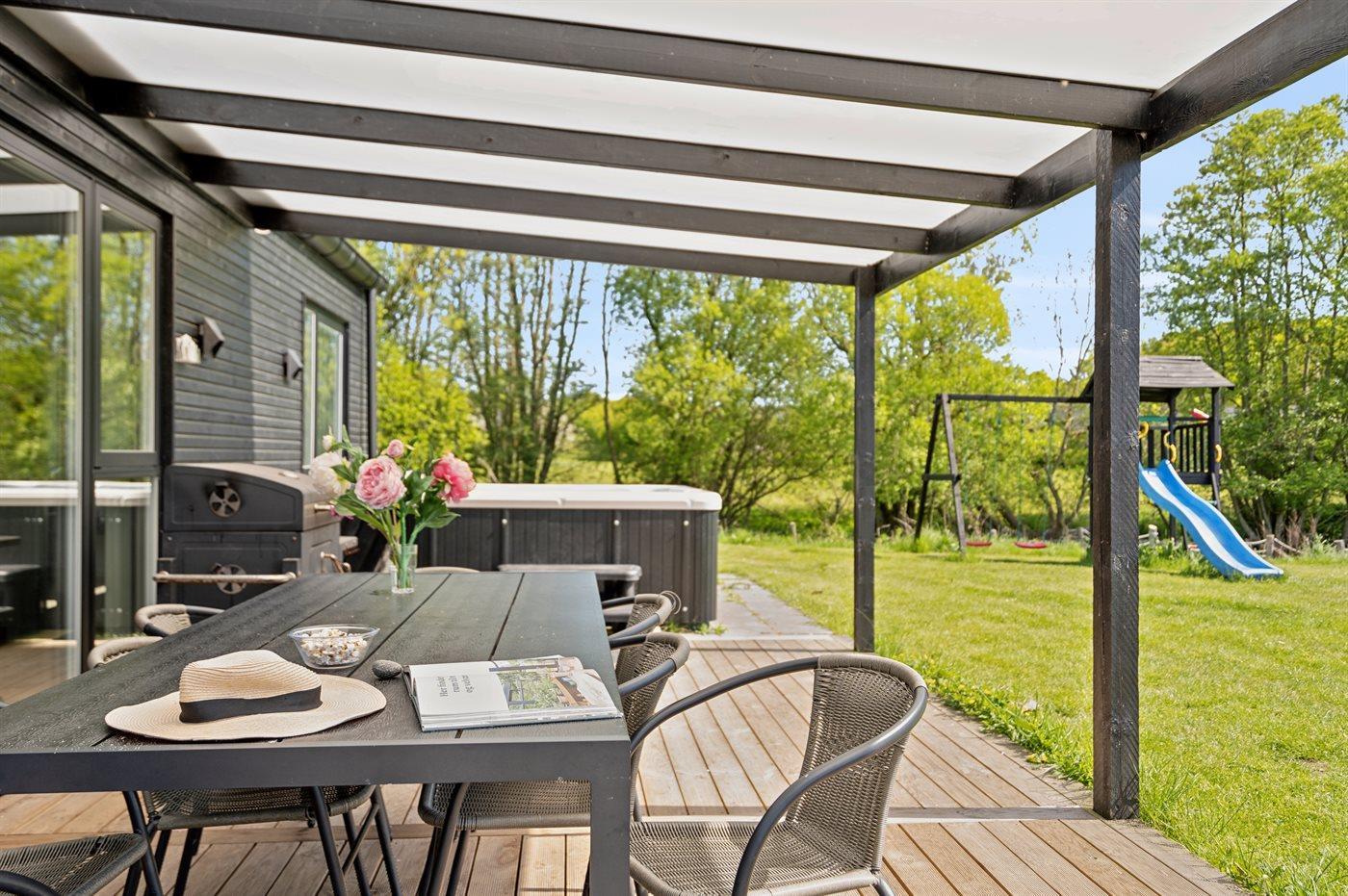 Die Ferienunterkunft liegt auf einem 970 m² großen Naturgrundstück. Die Entfernung zum Meer beträgt 300 m. Die nächste Einkaufsmöglichkeit liegt 6000 m entfernt. In einem Abstand von 10000 m gibt es einen Golfplatz. Es steht ein offenes Terrassenareal zur Verfügung. Außerdem gibt es überdachte Terrasse. Trampolin. Spielturm. Es steht ein Grill zur Verfügung. Es ist ein Ladestecker für Elektroautos installiert. Ladestecker Typ 2. Mit einer Ladeleistung von 11 kW. Parkplatz auf dem Grundstück.