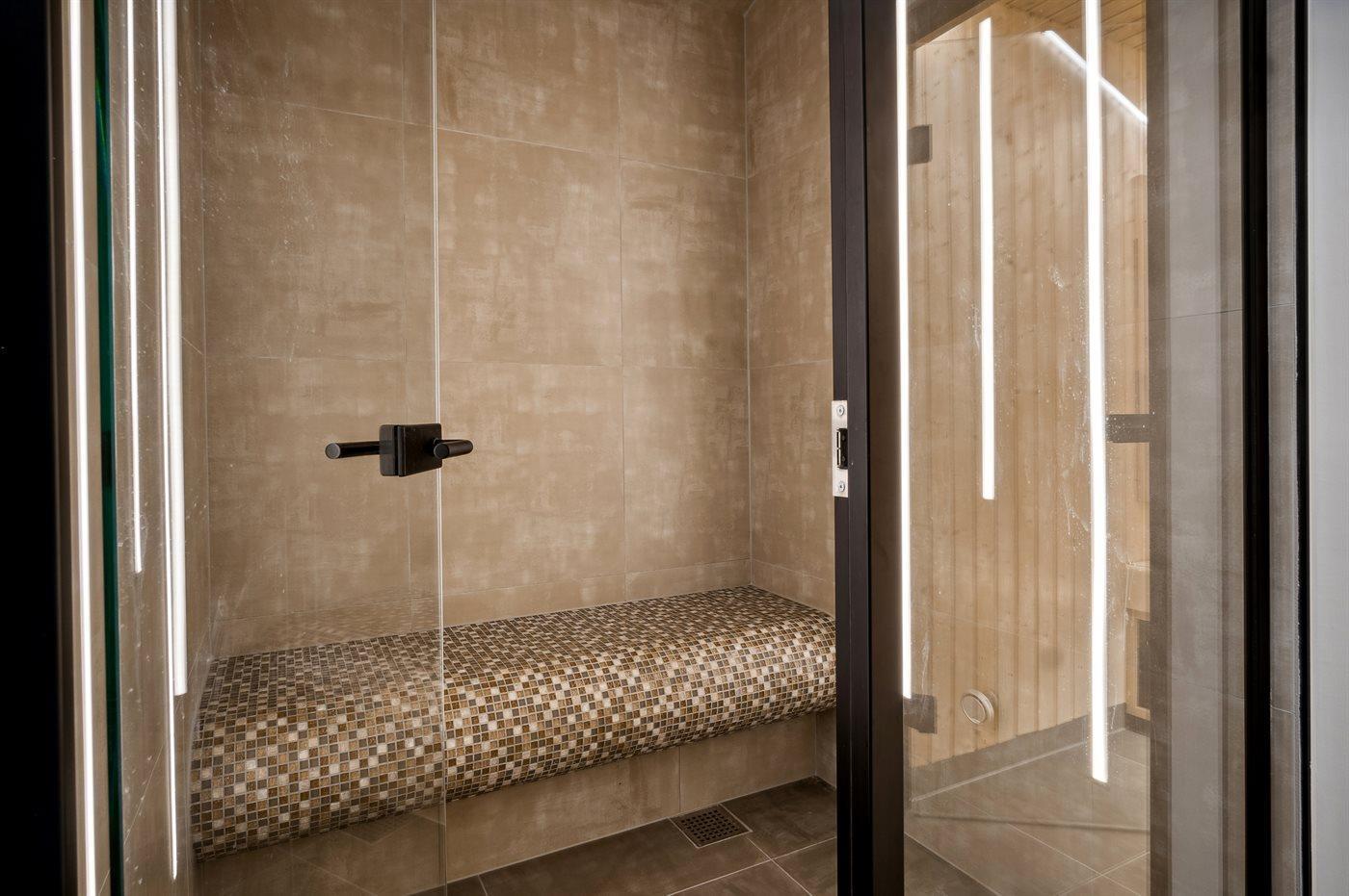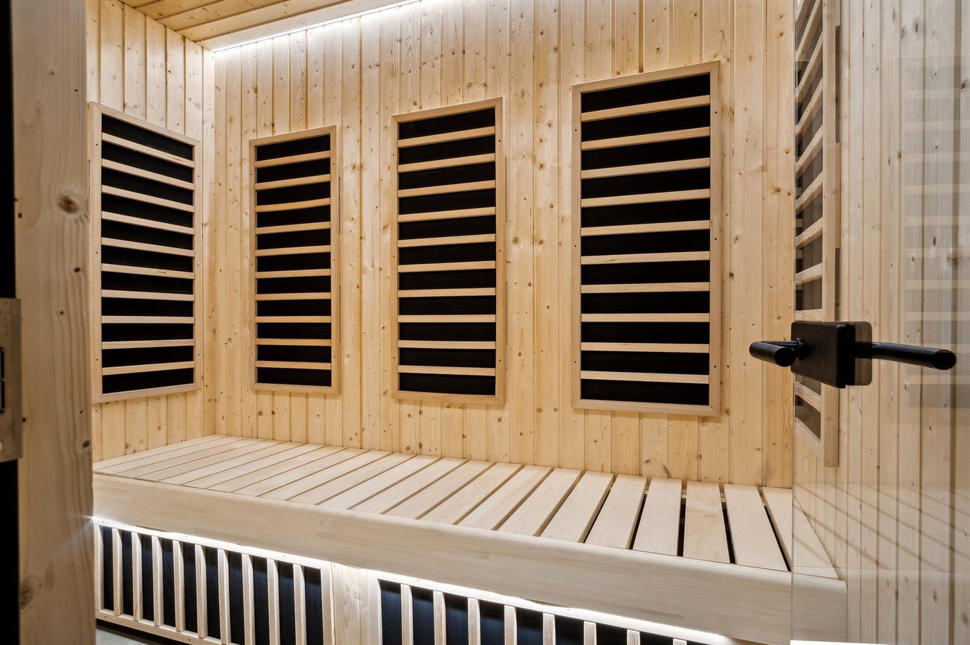 Es gibt 2 Badezimmer mit Duschnische und 2 Toiletten. Fußbodenheizung in 2 Badezimmern. Multifunktionsdusche. Es steht eine Sauna zur Verfügung in der Sie sich so richtig entspannen können.