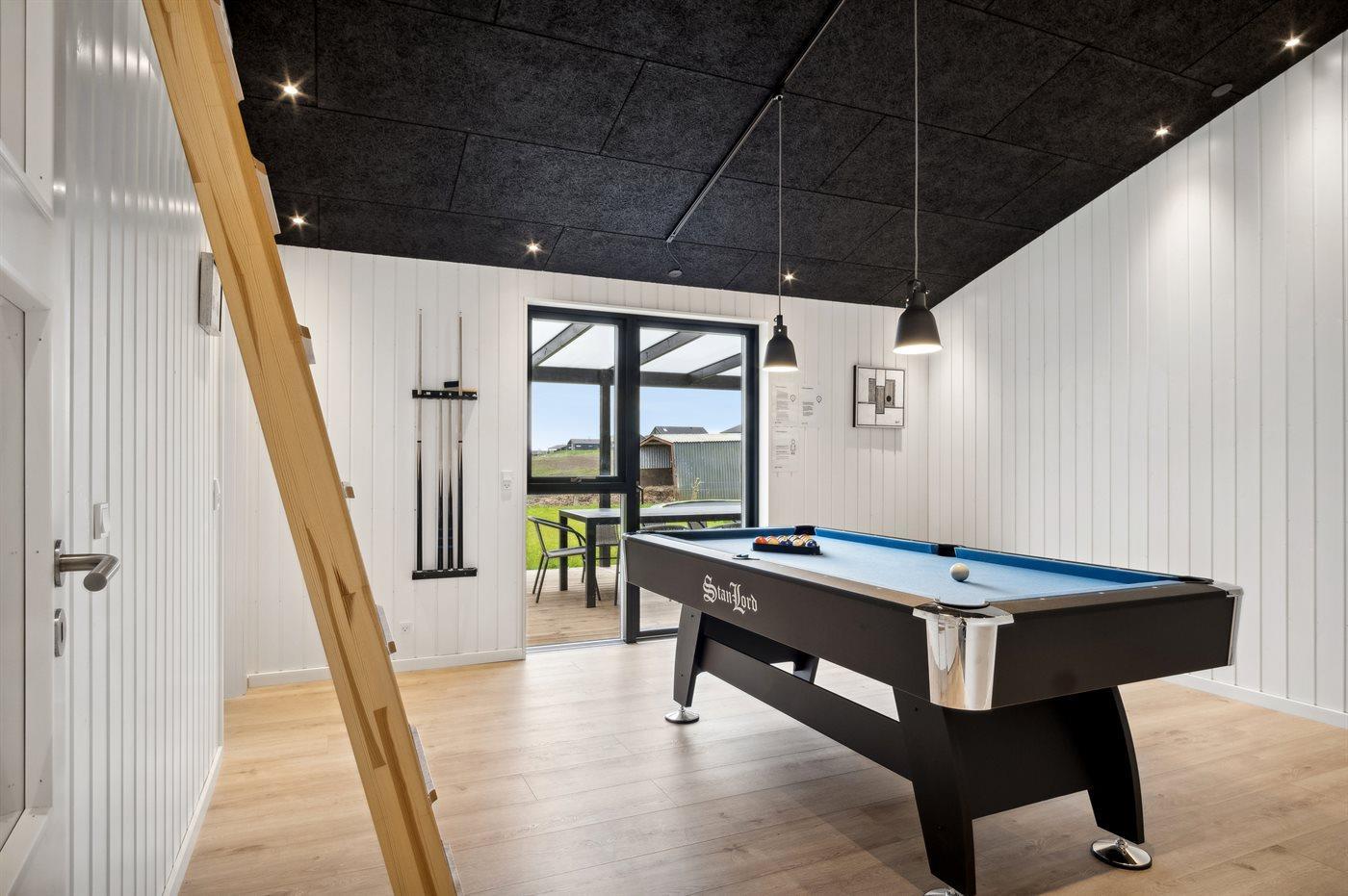 Modernes Aktivitätshaus in Kelstrup Strand mit Whirlpool, Sauna, Billard und Meerblick, nur 300 m vom kinderfreundlichen Strand entfernt.