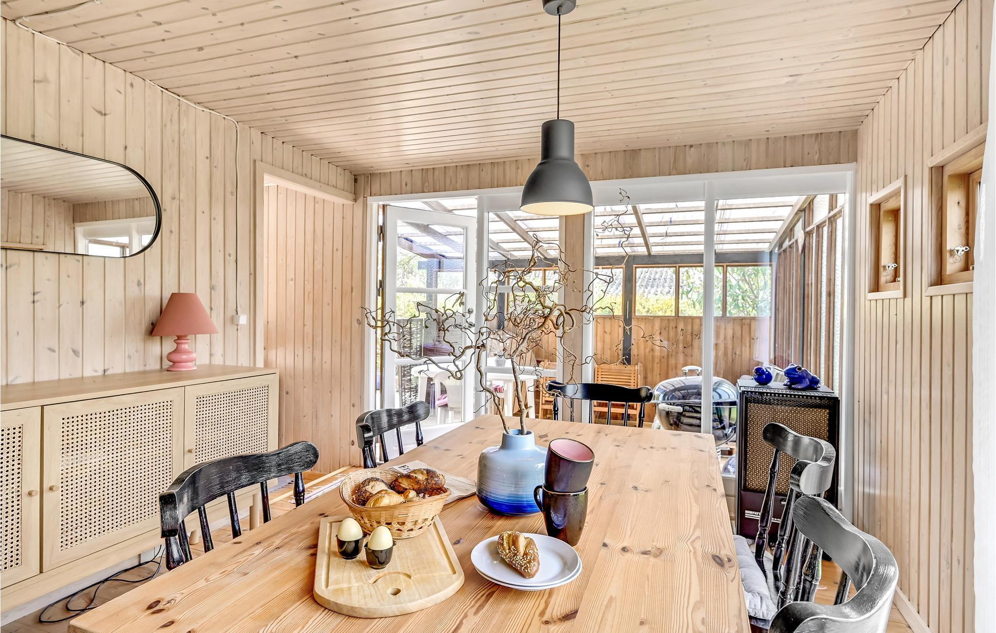Nur einen kurzen Spaziergang vom Meer entfernt erwartet Sie dieses klassisch dänische Holzhaus mit privatem Garten – perfekt für einen erholsamen Familienurlaub. Das Haus überzeugt mit seiner offenen, warmen Einrichtung und vielen liebevollen Holzelementen. Große Fenster sorgen für einen angenehmen Lichteinfall und schaffen eine einladende Atmosphäre. Verbringen Sie gesellige Stunden bei gemeinsamen Mahlzeiten oder Brettspielabenden, während die Kinder draußen im Spielhaus toben.