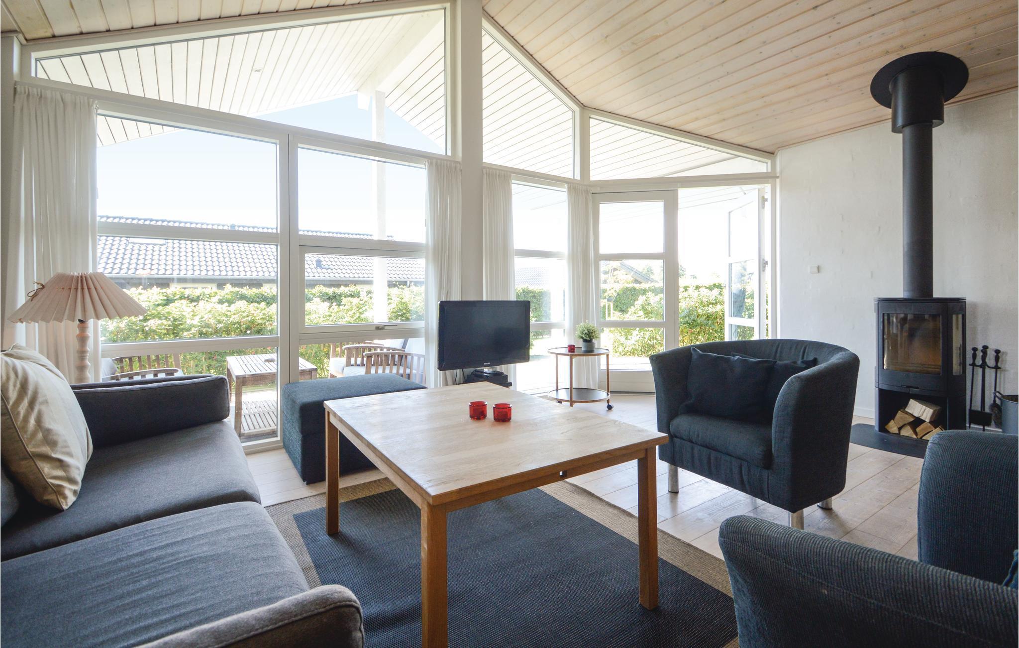 Erleben Sie Komfort und Entspannung in diesem großzügigen Ferienhaus nahe dem kinderfreundlichen Kelstrup Strand.