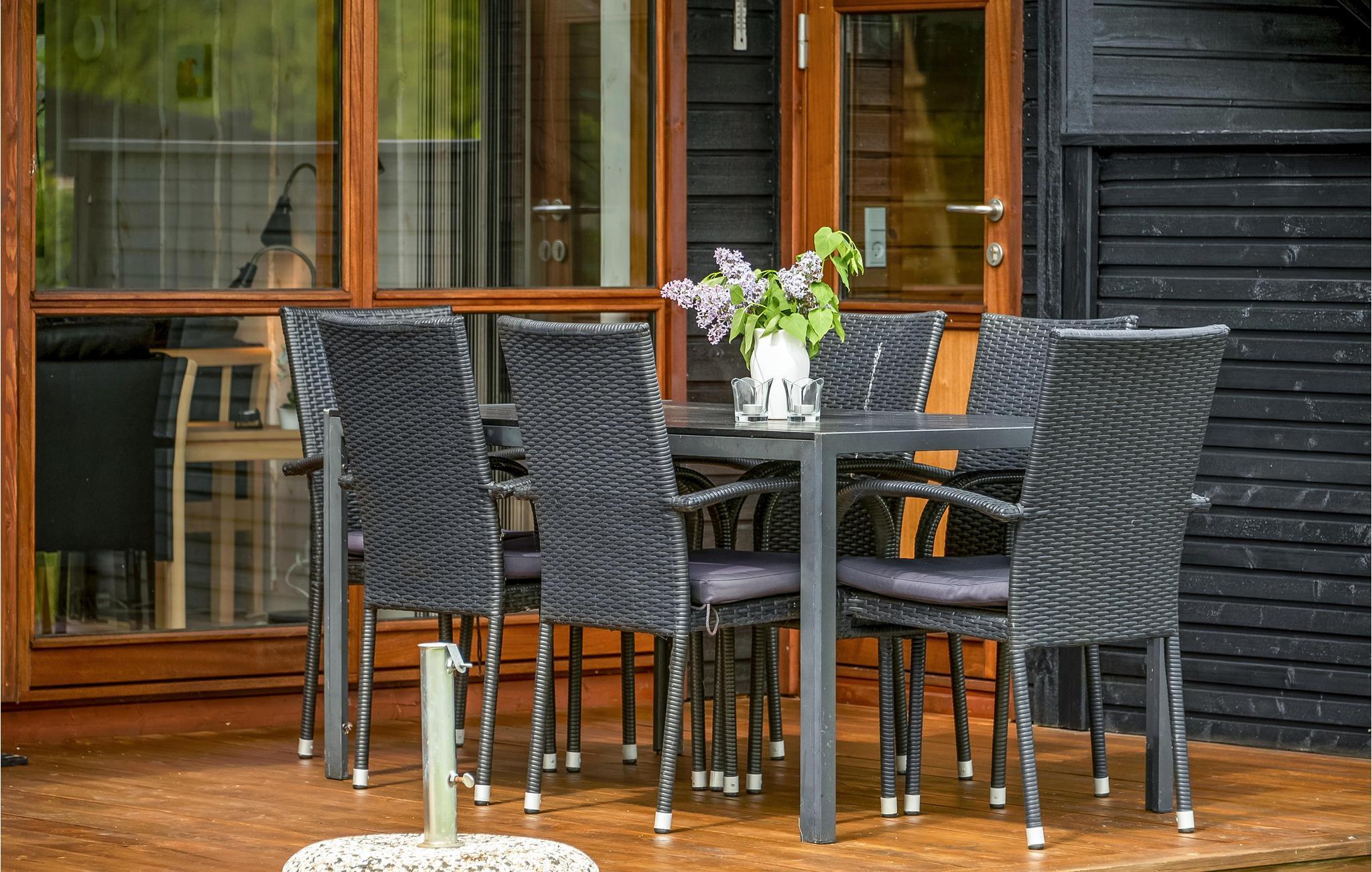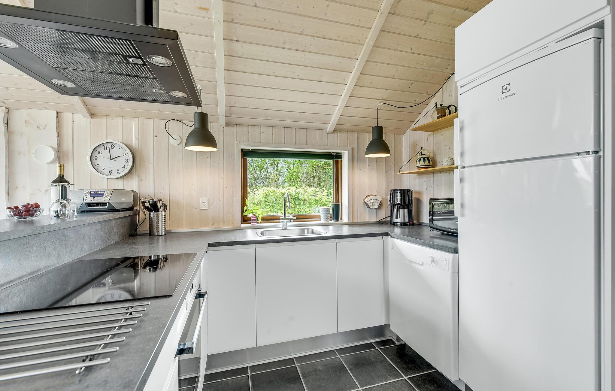 Es wurde 2016 gebaut und im modernen skandinavischen Stil eingerichtet, mit modernen Möbeln von guter Qualität. Die großen Fenster im Wohnzimmer sorgen für wunderbaren Lichteinfall, und Sie betreten direkt die teilweise überdachte Terrasse mit Sonne und Schatten. Die Küche ist offen mit dem Wohnzimmer verbunden, wo Sie alles erwartet, das Sie im Urlaub brauchen. Natürlich gibt es im Haus auch Waschmaschine und Spülmaschine. In den zwei Schlafzimmern gibt es Doppelbetten, und im Familienzimmer ein Einzel- und ein Hochbett.