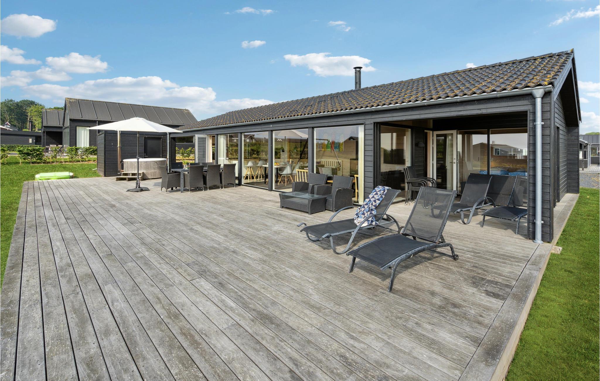 Luxuriöses Ferienhaus in Kelstrup mit Wellness, Panoramablick auf den Kleinen Belt und zwei überdachten Terrassen.