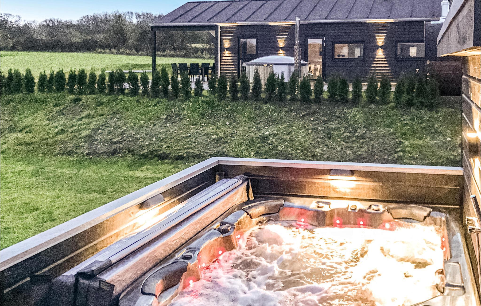 Modernes Ferienhaus in Kelstrup Strand mit Whirlpool, Sauna und vielfältigen Aktivitäten für erholsame Tage.