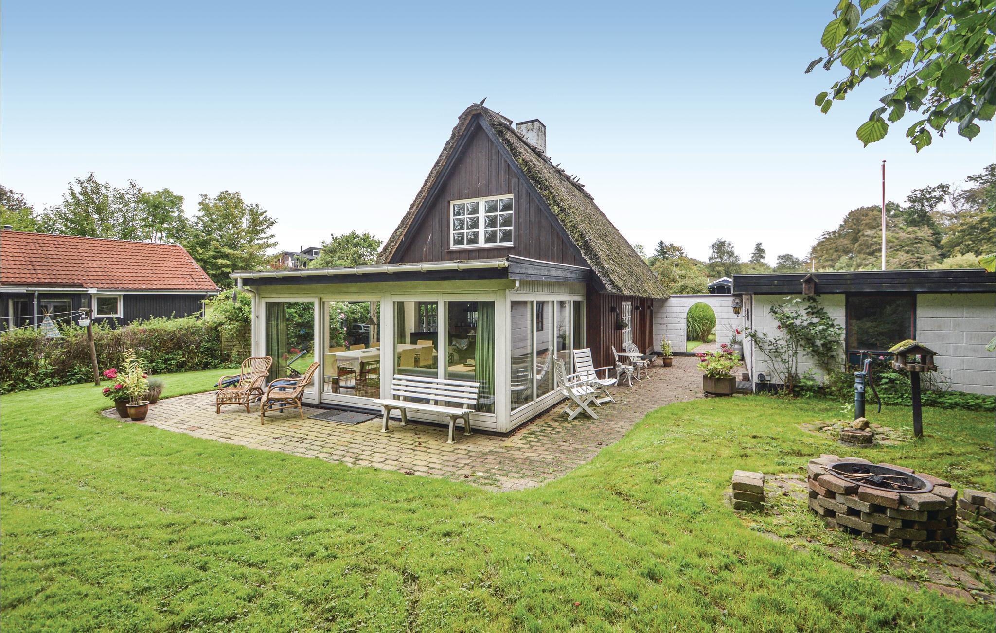 Reetgedecktes Ferienhaus in Kelstrup Strand mit Kamin, Garten und Nähe zu Wald, Wasser und kinderfreundlichem Strand.