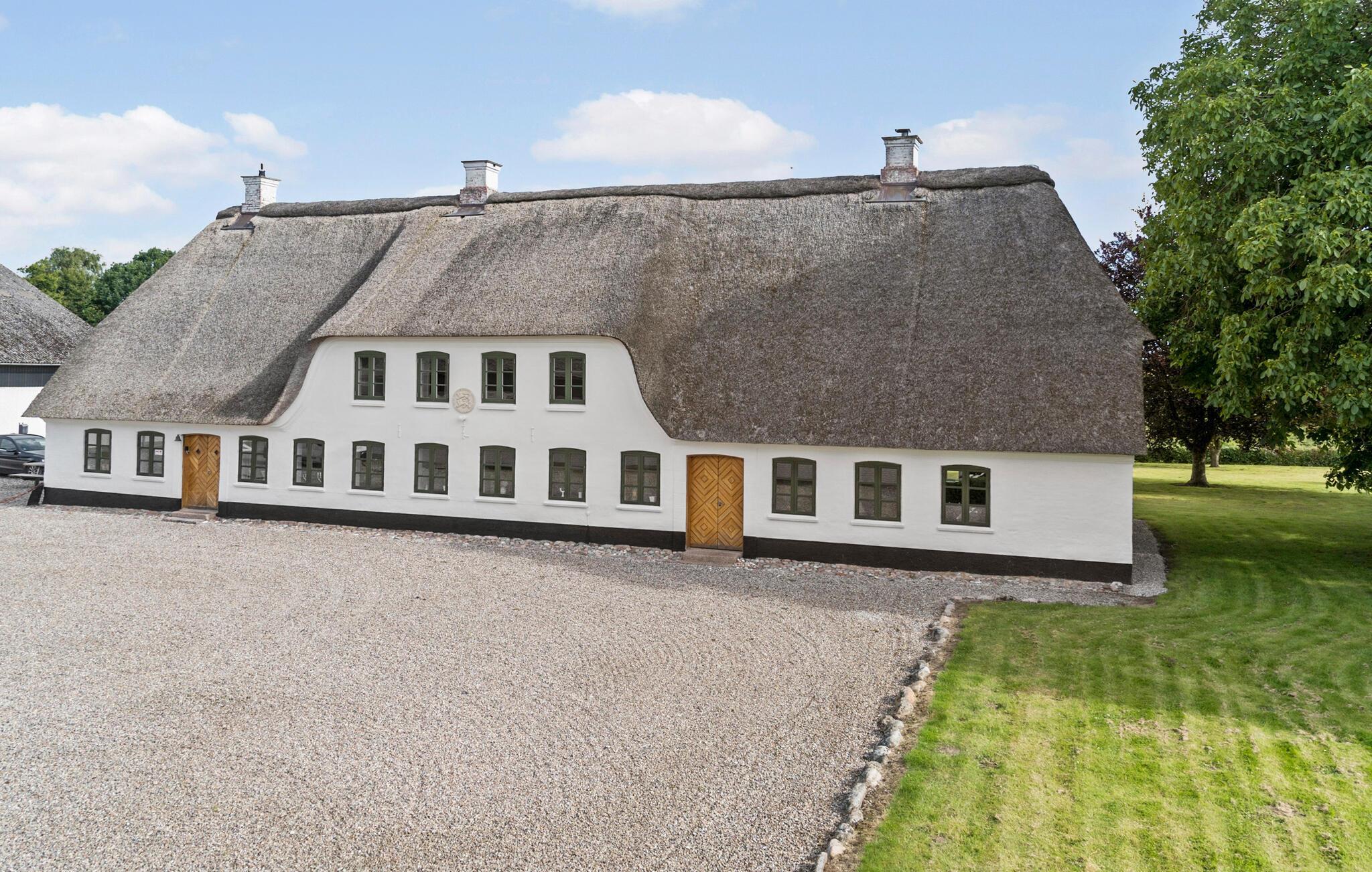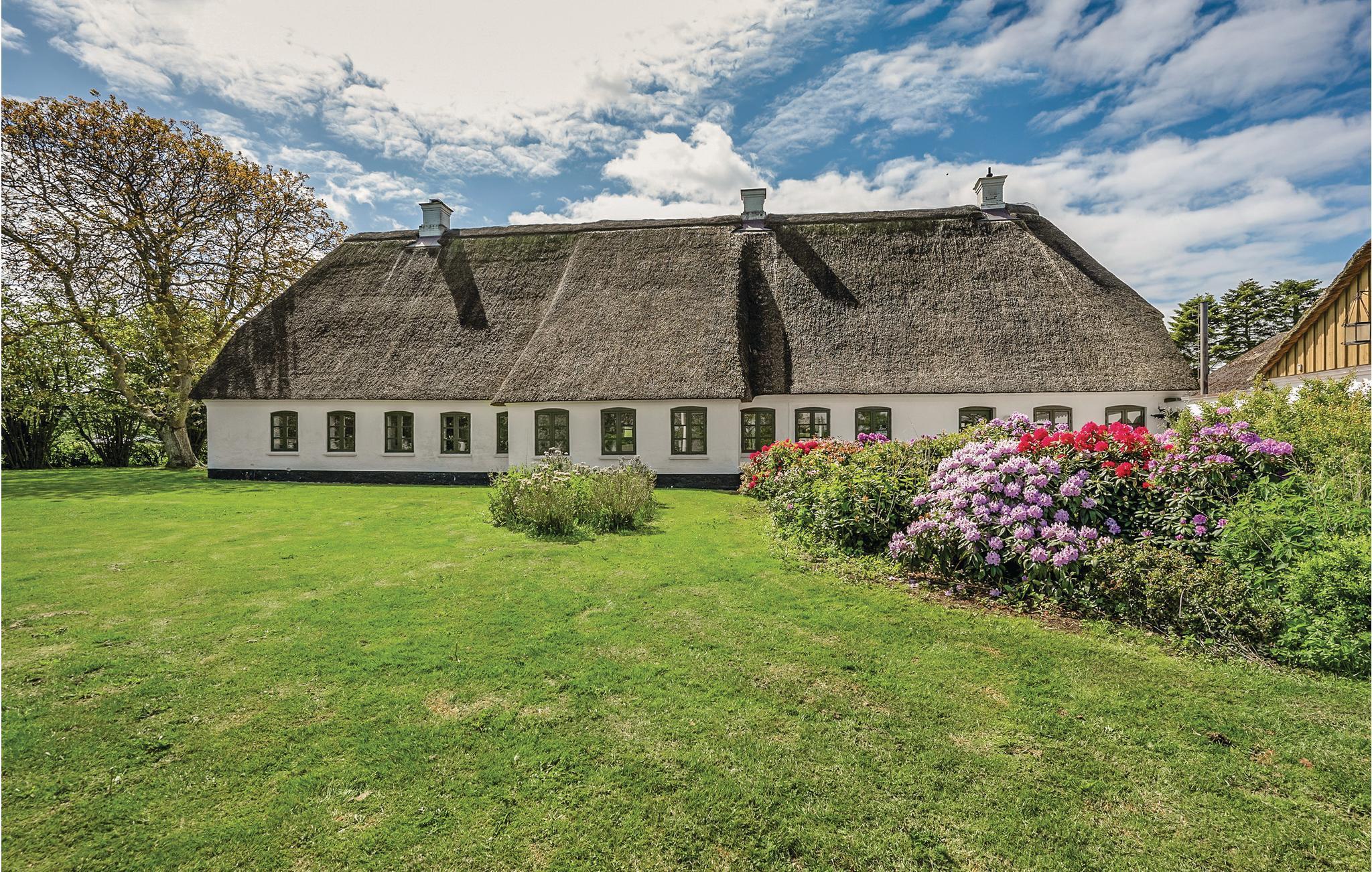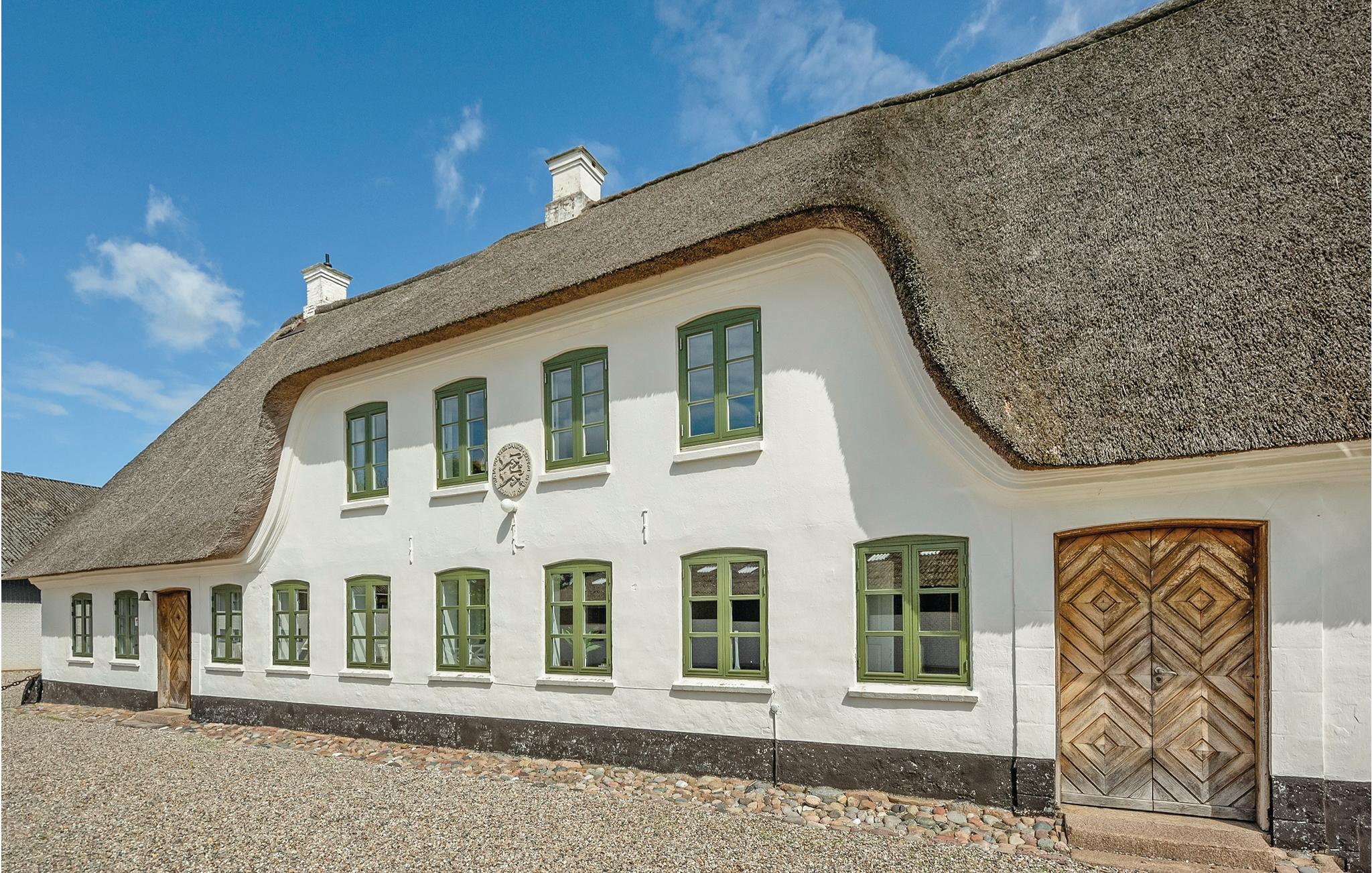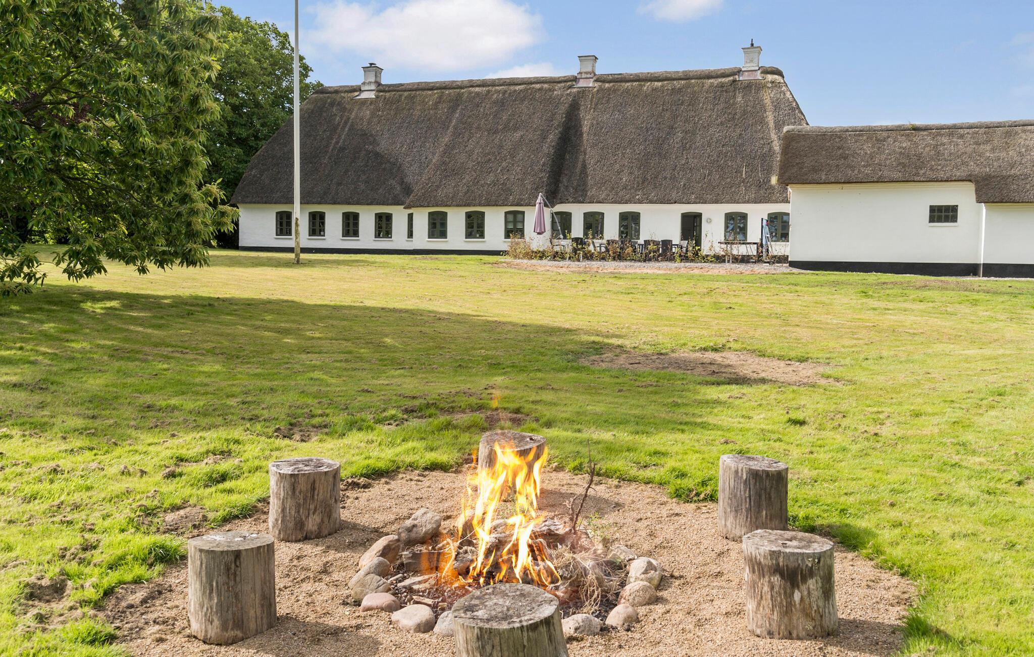 Ehemaliger Bauernhof mit Reetdach am Kelstrup Strand, ideal für Familienfeste und Aktivitäten in idyllischer Natur.