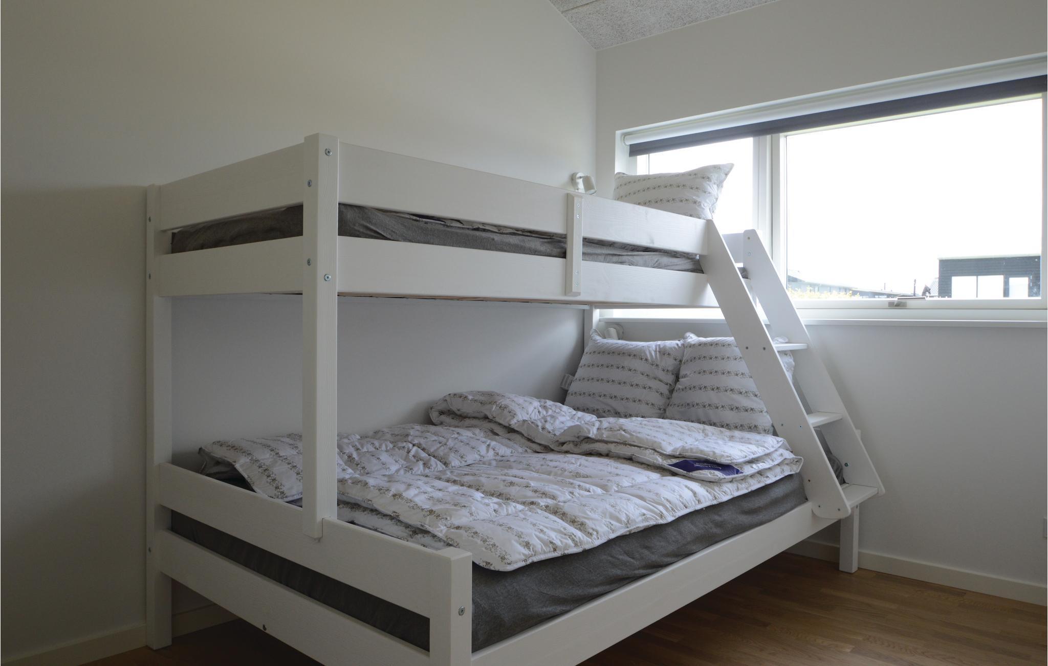 Dieses hochwertige Ferienhaus wurde 2019 gebaut und liegt in Kelstrup Strand. Es ist wunderbar eingerichtet und hat tolle, teilweise überdachte Terrassen, so dass Sie hier nicht nur im Sommer viel Zeit an der frischen Luft verbringen können. Im Innenbereich gibt es drei Schlafzimmer, die alle von der Wohnküche abgehen. Zwei dieser Zimmer sind Familienzimmer mit einem Doppelbett und einem darübergelegenen Etagenbett.